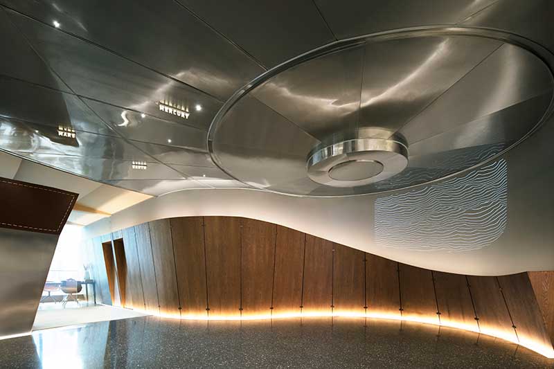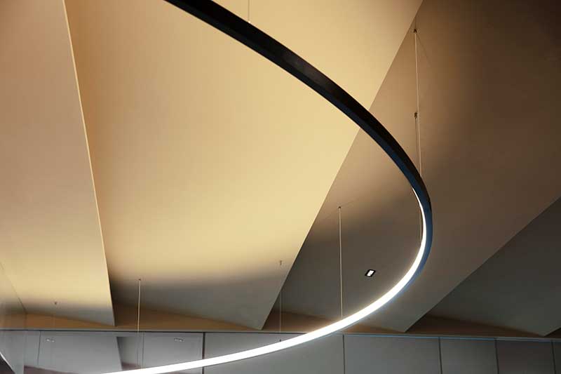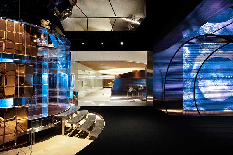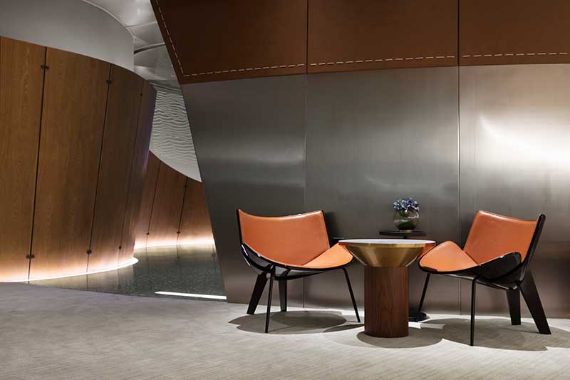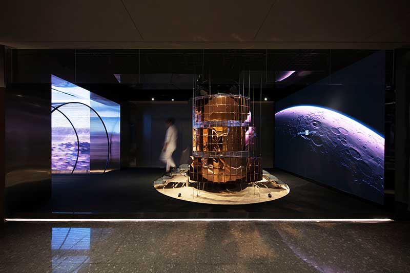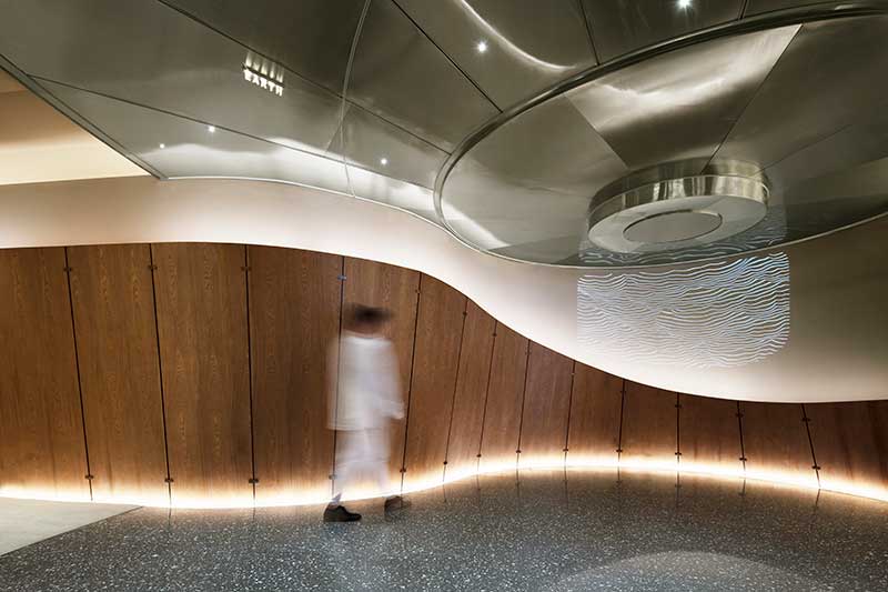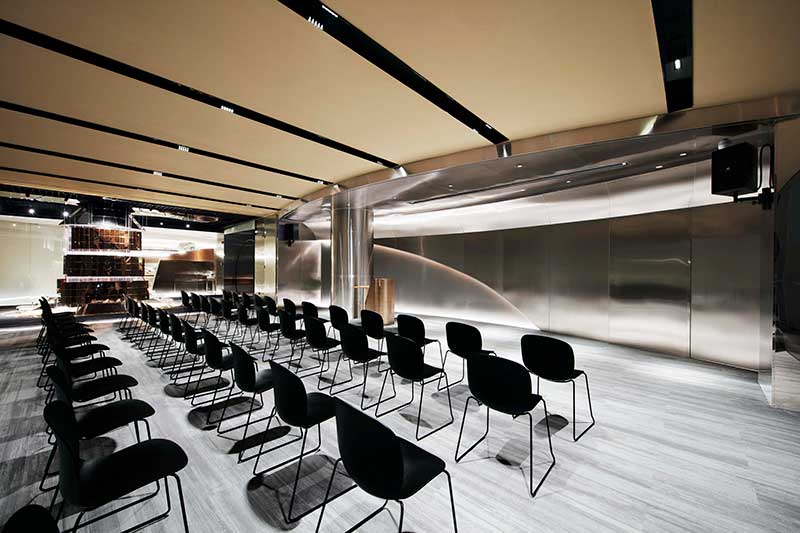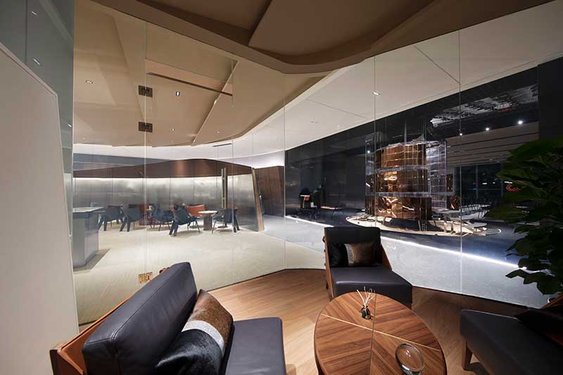 以“知识实验室”为主题概念进行设计,象征着The Lab是一个可以交流思想和探索未来无限可能的空间,打造了能同时满足品牌“知识城市”创新体验示范、客户签约、咖啡、会议与沙龙、游逛及商圈日常体验打卡等多重功能诉求的综合创新型展厅,一方面能够围绕项目前瞻性的开发理念和年轻化的商业消费群体定位,与整个项目及周边创意型店铺形成气质氛围的统一,一方面应项目商业签约及课堂讲座活动的空间需求,要兼顾时尚和雅致的室内氛围。