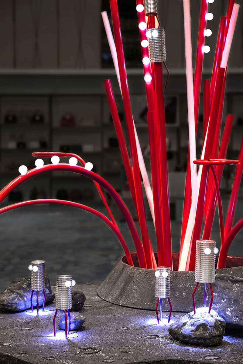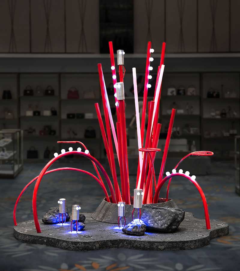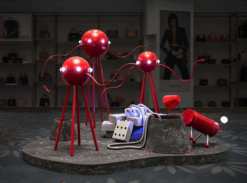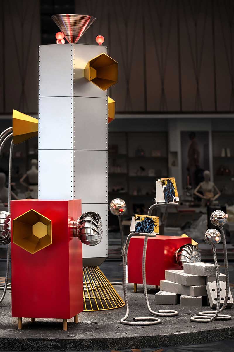 红谷秋季订货会中,全新定制“地球大爆炸”一系列艺术故事,覆盖长达12米的橱窗与6个视觉点。一个橱窗一则故事一个宇宙,我们乐于将体验构筑在立体的品牌世界观(宇宙观),将品牌与产品幻化于奇趣戏剧的情节中,沿着探寻12米橱窗,漫游全场6个装置陈列点,热情、神秘、奇趣,各种独属于红谷的时尚面貌在这季“地球大爆炸”想象宇宙中都能寻获。