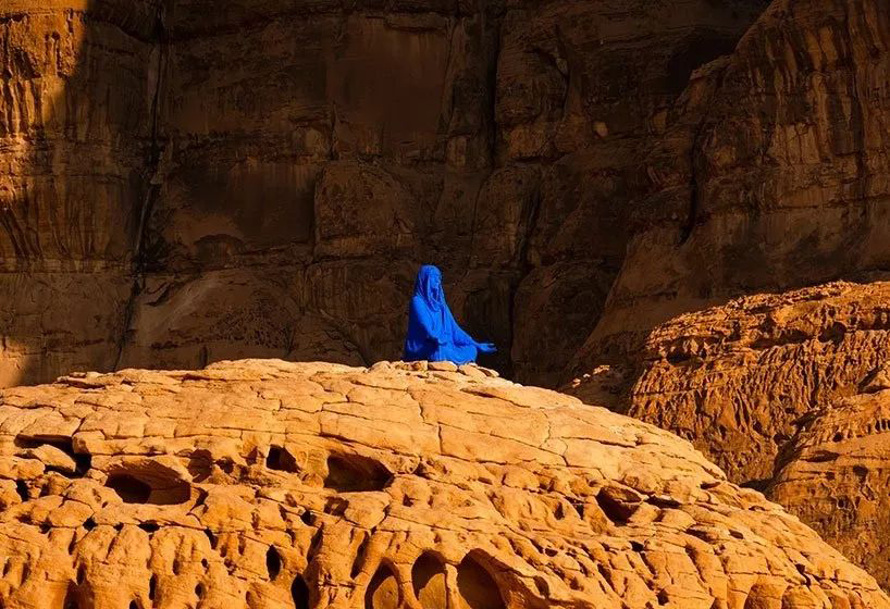 艺术家Sherin Guirguis — “kholkhal aliaa”:它着眼于文化记忆在塑造当代观念中的作用。一座贝都因人脚镯的雕塑嵌在岩石缝隙中,象征着女性的力量和活力,同时也是对阿鲁拉古城之旅的隐喻。