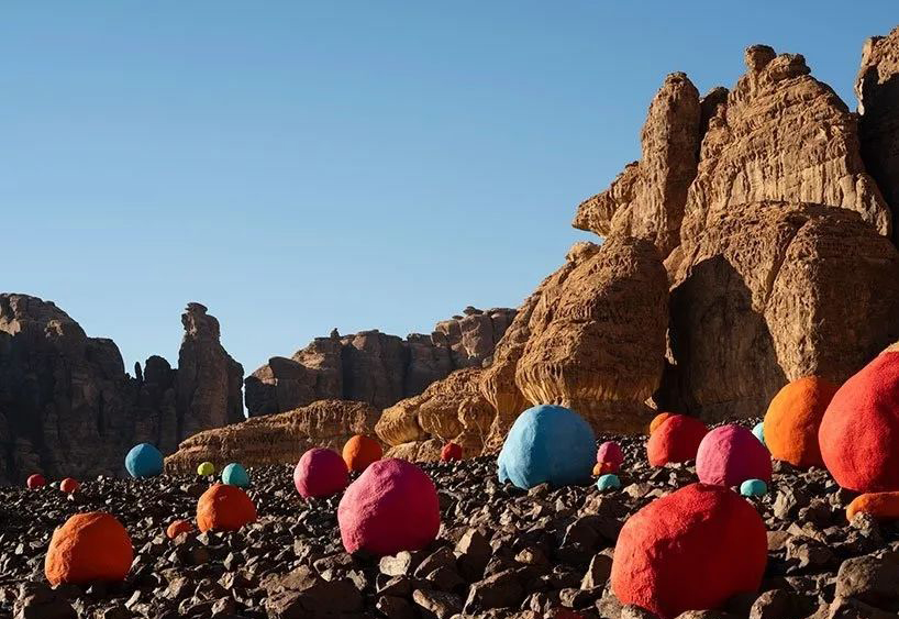 艺术家Mohammed Ahmed Ibrahim — “falling stones garden”:“falling stones garden”描绘了沙漠生态系统的脆弱性,通过320个岩石状的形态,以高度饱和的颜色描绘出不同大小的形状。