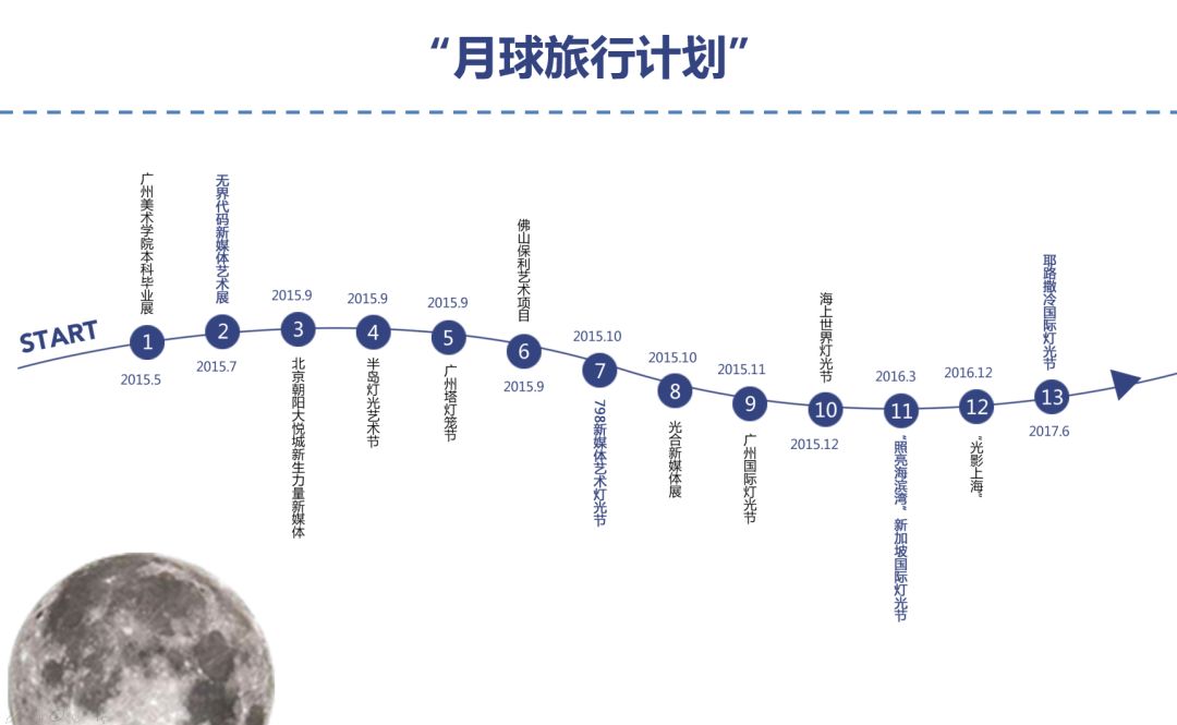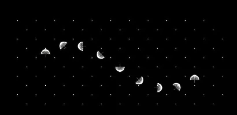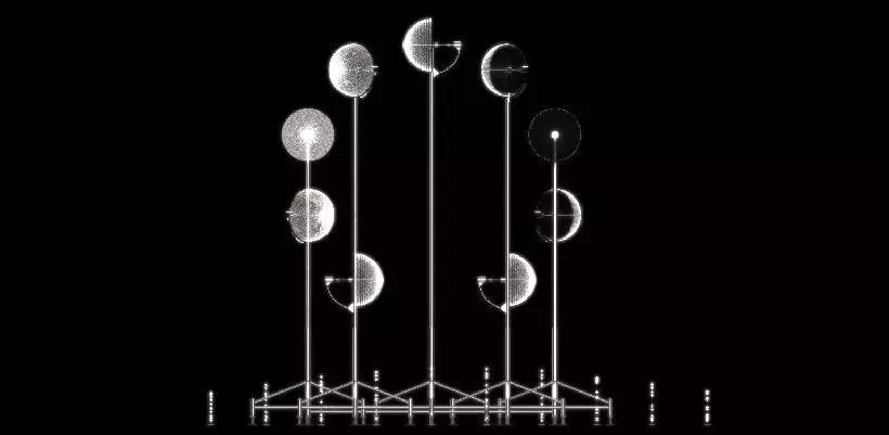 由9个旋转kinect灯光装置组成。它呈现出不同的月形姿态,给人以全新的感官体验。观众可以通过不同的观看方式进行探索,从不同的角度观看,给装置带来好奇心。通过对科学精神的思考,观众可以再次定义和理解这部作品本身的概念。
