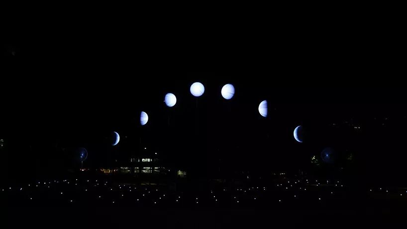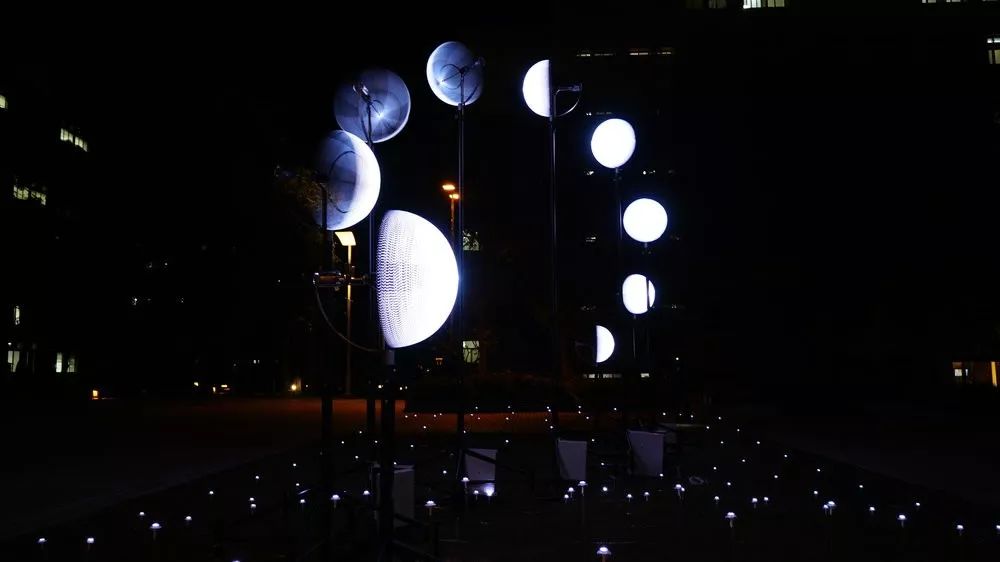 追溯到20世纪60年代的“太空竞赛”,登月象征着人类对宇宙最直接的好奇心和探索欲望。总部位于台北的whyixd工作室创建了“define moon”项目,由9个受月球运动启发的旋转灯光装置组成。设计呈现了月球的不同位置,使位于台湾新竹的交通大学获得了非凡的感官体验。