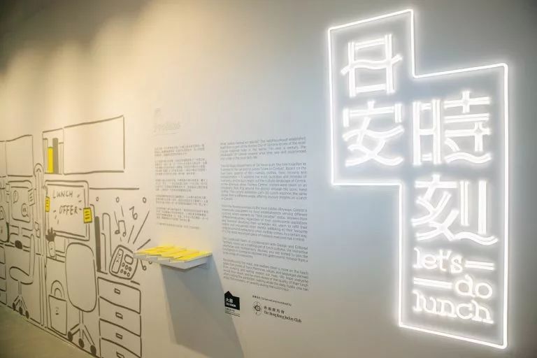 分为几个展区,展现不同的午餐类别和级数,有一边用膳一边洽商的行政午餐场景;由从前公司会为员工提供的福食(包伙食)的人情味福利,到同声同气同乡会的「架己冷」食肆,都是香港独有的饮食文化,绝对是有心的木土文化展览。内容有趣又扎实,再加上插画师王梓妃的插画,是个轻轻松松的文化展。