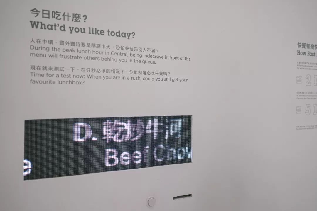 展览以互动方式展现打工仔争分夺秒大疾走,买外卖、排长龙的「揾食」之苦。展览展出上世纪中环外卖始祖,镛记及嘉顿当年每个只售1.8元的复刻仿制饭盒,揭秘中环各同乡会菜馆的神秘面纱,以及硕果硕存的「包伙食」文化。
