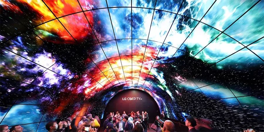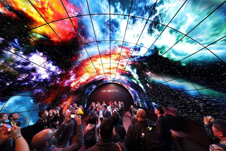 其现场搭建的视觉焦点是用216个OLED电视,搭建了一个隧道,在一个巨大的显示屏上播放了宏伟的自然界的内容。参观者通过这种身临其境的体验,感受了品牌的创新产品。