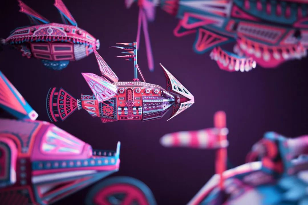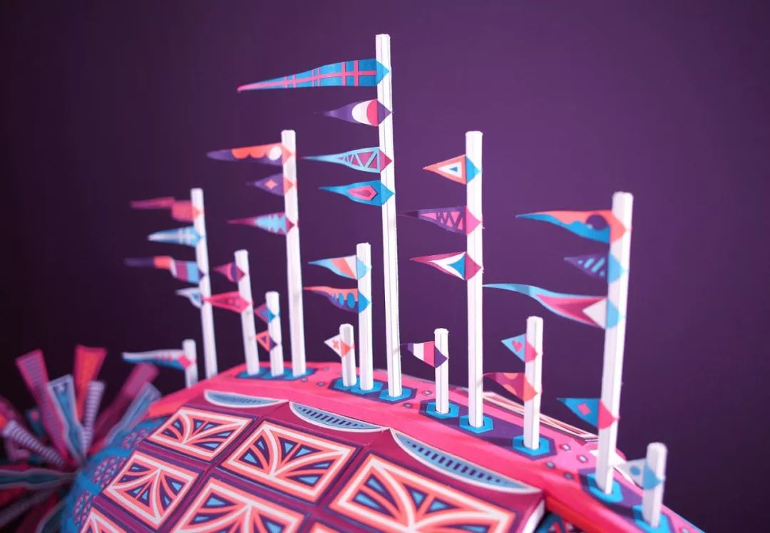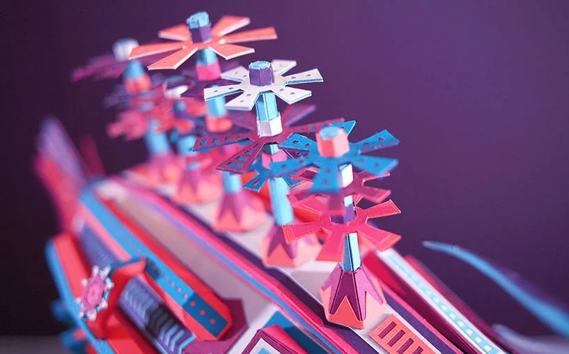 最近,Zim&Zou以纸作为素材制造做了最新纸船作品“an ode to travel”(旅行颂),灵感来自于西方艺术经典主题“出埃及记”。这组梦幻纸船采用明亮的桃红色,蓝色和紫色为主色调,色调简洁而充满活力,整个场景精致而细腻,纸元素飞船体现了人类为了梦想和自由所经历的旅程,是何等美好的事。