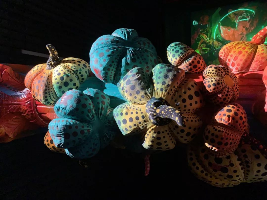 这部分能看见几根罗马柱上都缠绕了这些年比较火热甚至在网上掀起热潮的艺术元素:草间弥生的波点南瓜和KWAS。不禁让人思索我们今日所追随的到底是文化本身还是附加在潮流上的自己。