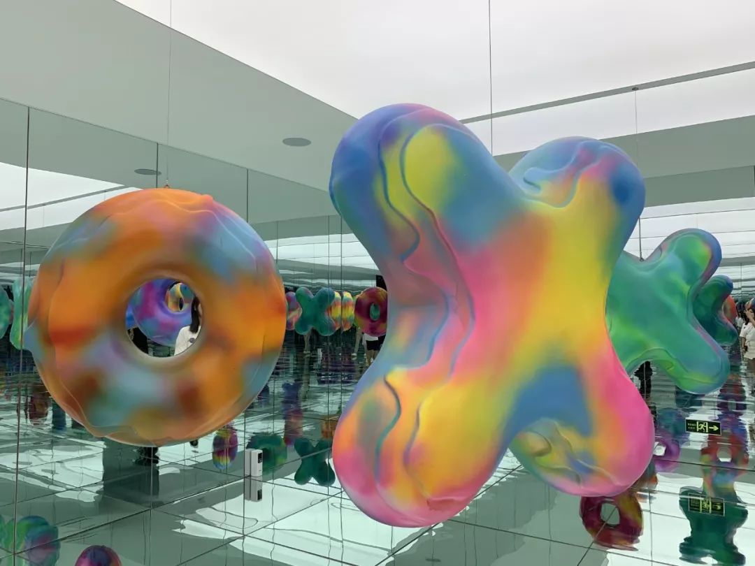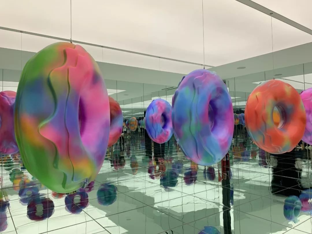 一眼望去,不同形态的彩色甜甜圈带来强烈的视觉冲击感,四面环绕的镜子与光线都能映射出最真实的你。这间展厅无疑是女孩子停留时间最多的地方,360度花样摆拍,不放过任何一个角落。