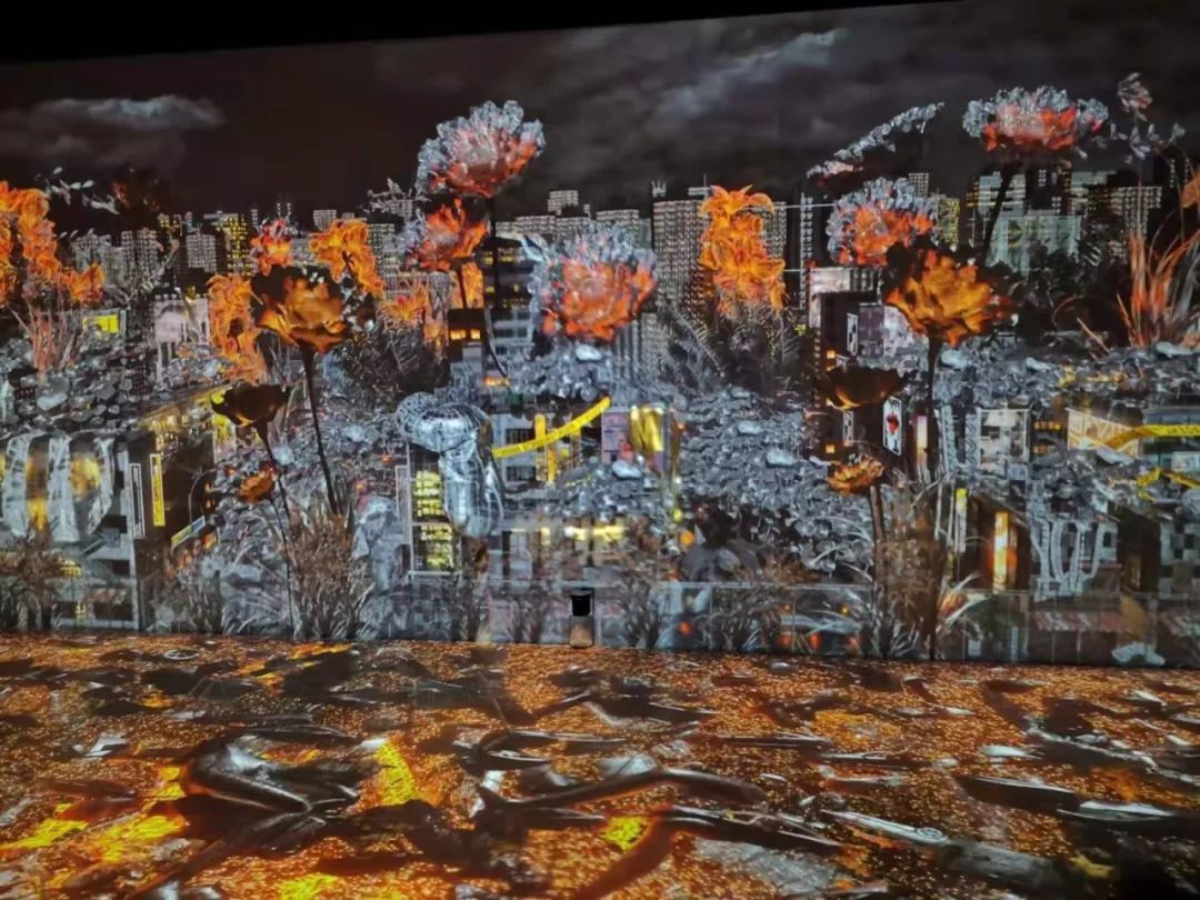 火焰般燃烧游走八种身份标签各异的女性角色,与高灰度城市建筑群构筑成极具戏剧色彩的超主观想象空间。在这个充满着压抑和愤怒的空间里,设置了互动点,每一步移动,脚下的光影都随之变幻。仅靠投影就把空间层次打造的这么丰富,真的是视觉享受。