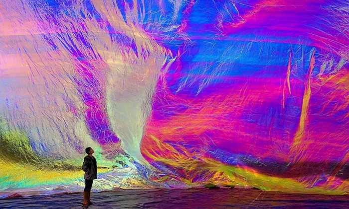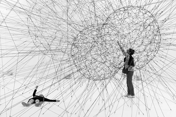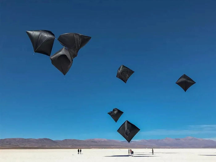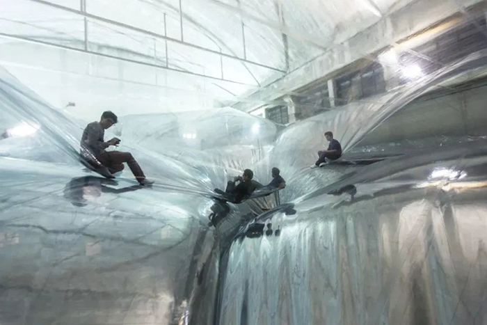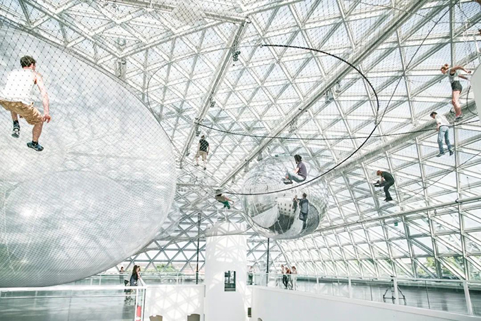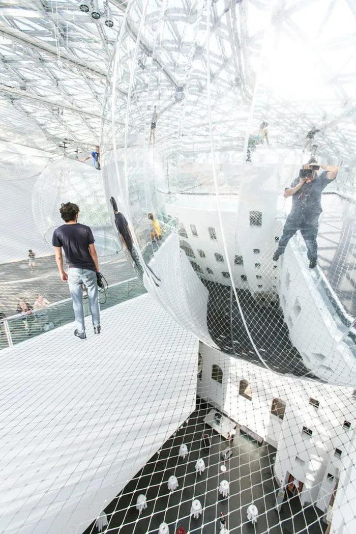 这是一个巨大的空间透明膜,每个人在上面的互动体验,都影响着“时空泡沫”的形态变化。走在上面能体验到漫步云端的感觉,人们的律动会通过它传递给彼此,Tomas希望通过这个作品让人们意识到我们对地球会有怎样的影响,从中得到空间与情感上的双重体验。