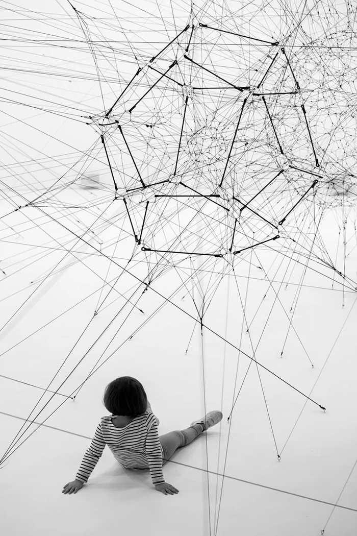 蜘蛛网是生活常见的,做为设计师,你会有什么灵感了?设计素材总取材于生活中捕捉的瞬间或是足迹所到之处个人所见生活。也许我们可以学会不再害怕蜘蛛,并从从它们身上获得灵感。——这是阿根廷装置艺术家Tomás Saraceno想象中可行的乌托邦构想,蛛网贯穿他整个艺术生涯,贯穿他对未来城市的想象力。