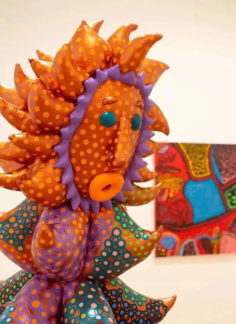 此次展览包括草间弥生标志性的My Eternal Soul系列中的新绘画。这些作品是对线条和形式的探索,用微小的细节和大胆的色彩形成冲突感,使它们既抽象又富于象征意义。