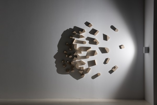 Fred Eerdekens的作品乍看是一件简洁优美具有抽象线条的雕塑,当观者走到某个定点时,会惊喜发现雕塑竟倒映出一段发人深醒的诗句。实体物件读不出任何信息,反而影子藏著有意义的文字,艺术家巧妙翻转虚实、存在与不存在等二元关系。