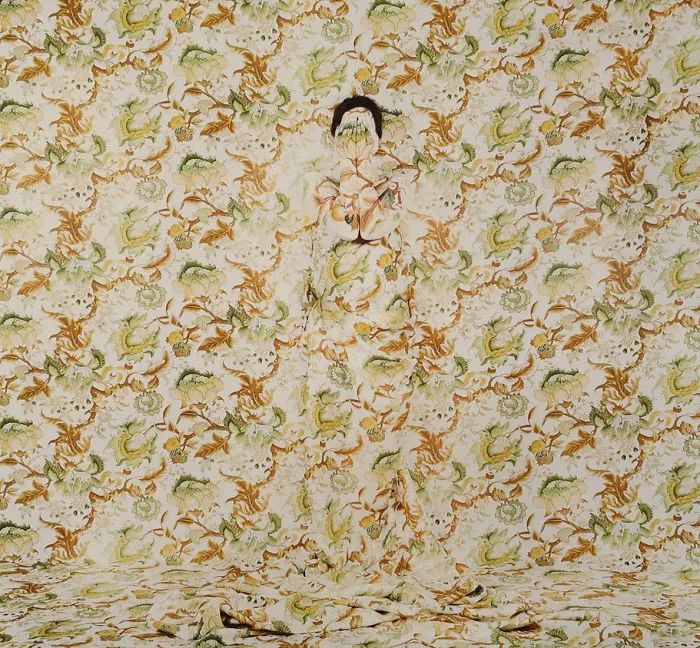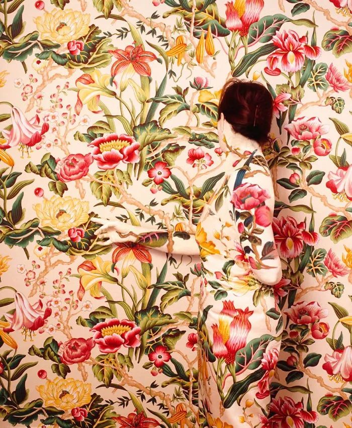 艺术家Cecilia Paredes出生于秘鲁,现居美国费城,她将摄影、绘画、行为艺术融为一体,创造出独特的艺术形式。Paredes把自己融入不断重复的花纹中,让自身形象从审美意义上消失了。