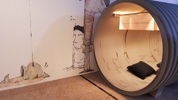 涂鸦创意玩家Candy Bird,此次参展名为「疏洪道」的作品,是将2米巨型水管搬入展场,筑起一块城市的秘密角落,可以鑽入水管中,或坐或卧,仰头阅读一篇失恋日记。