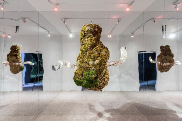 「温度物所」的Isaac与Wayne喜欢以植物延伸创作,他们用青苔隐喻在这个城市、这片土地上生长的人们,从台北山上搜集了四种青苔,经过三个月自然风乾,呈现迥异的纹路与色调,将其组成一个螺旋状的仿生艺术装置。装置上有如DNA序列的银色切片,是使用手机萤幕的回收废料再制,随着装置旋转,镜面折射,无限延伸有机体的生命与想像。