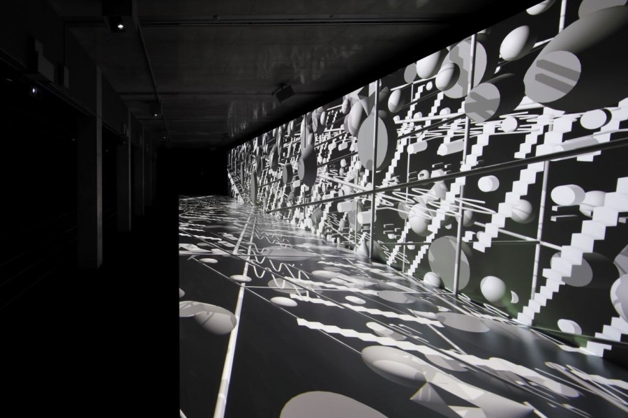 化繁为简的动线规划,不仅提供创作者不设限的挥洒空间,也能更聚焦在抽象的感受;长期与Cornelius合作,负责专辑装帧的设计师北山雅和也参与操刀本次展览主视觉,以黑色为基底,将「AUDIO ARCHITECTURE」一词用线条的形式拆解、翻玩,让字体转换为具空间感的结构。