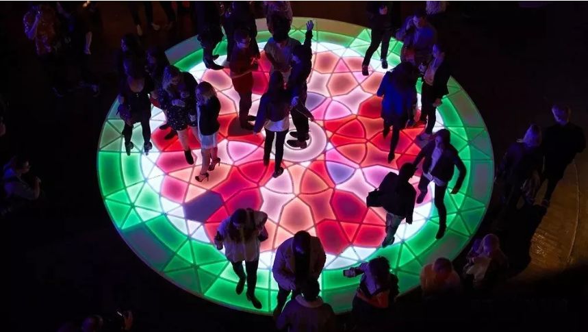 该作品是由Darren、ENESS和MINI合作完成的。由于互动元素的加入,这个舞池成为舞蹈革命以来最先进的舞蹈设备。当人们在舞池上翩翩起舞的时候,舞池可以追踪人们的动作,改变地板上的灯光,唤醒人们的情绪。这不是一个僵死的舞池,而是一个能够呼吸、极具生命力的舞池。狭小空间里的舞台,成为肆意挥洒自己的梦幻场所,消除与外界的隔阂。人的心灵自由而又自在,不用理会尘世的纷纷扰扰,随着动感的音乐,跳一支尽情的舞,抚慰自己的心灵。