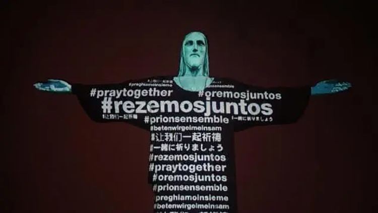 这是一座装饰艺术风格的大型耶稣基督雕像,位于巴西的里约热内卢,是该市的标志,也是世界最闻名的纪念雕塑之一,2007年入选世界新七大奇迹。在2020年当地时间3月18日晚,教会为全世界的病人祈祷,在巴西基督像上投影着所有已报告感染新冠肺炎病毒国家的国旗,并且在雕塑上用不同的语言投射了“让我们一起祈祷”的信息。我们可以看到,随着科技的进步,艺术的形式逐渐多样化。我们可以采取更加创新的手段,实现至善的美好,让最黑暗的时刻迸发光亮,治愈困境中的人类。
