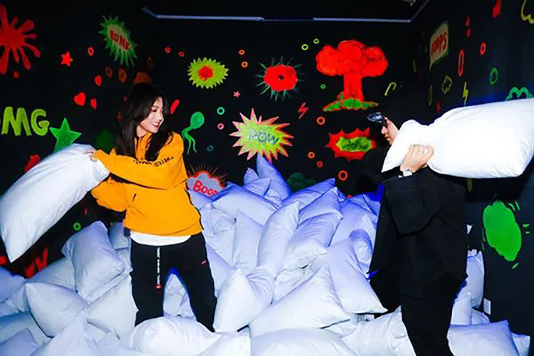 在家憋太久,是时候出门放风解压了!上海首个真人减压馆、36项奇葩减压项目、800平米超大空间带给你无限的解压欢乐!现场分为动态减压区,静态减压区两大类,招招直击压力:超级水床、黄金洗手间、颠倒屋、荧光枕头大战、告白小屋、摔碗屋、桌上足球,还有拍照美美的星空屋、压力沙漠、三大涂鸦墙…基本上玩一小时可以不重样!还有什么比漂浮在一片温柔的水面,更能安抚神经呢?清凉的触感,流动的质地,变换的光影,超级水床的强烈治愈性足以让你卸下重负。吐息之间灯火便被点亮,这是一片可以用气息唤醒的丛林,置身林中,轻轻吐气,你会惊奇的发现梦幻的世界正在亮起,更神奇的是,每次亮灯模式都会不一样哦!几百只枕头会在荧光灯下出现怎样的化学反应?五彩斑斓的空间里,可以自己凹造型,也可以和陌生人来场“突然袭击”,解压方式欢乐又好看!