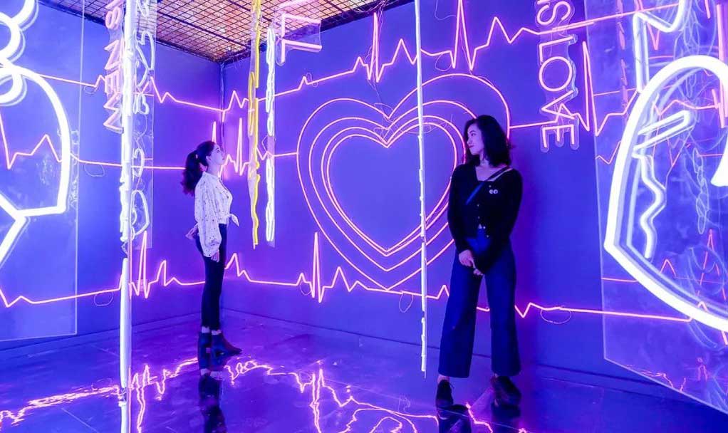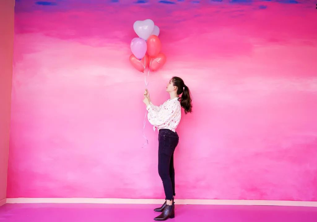 与其他pop up不同的是,Love Vibe Pop Up旨在提供一个适合情侣、闺蜜拍照的场所,也很适合一个人来体会爱情里酸甜苦辣的故事。展览一共有七个房间,代表了爱情里人们通常会经历的七个阶段。进入这个展览,首先就会看到一个粉色的房间,似乎寓意着一段美好的开始,拿上气球拍张照,开始一段美好的旅程吧。