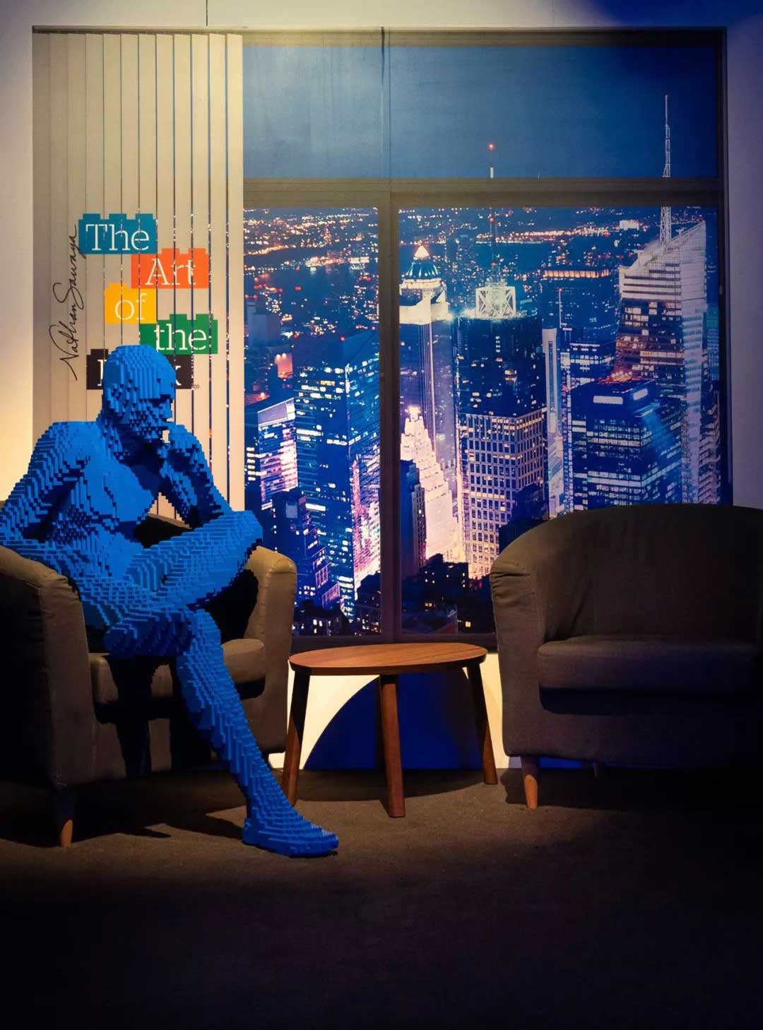 比起乐高雕塑,斑长觉得这更像是一件艺术品。Nathan把另一张椅子留给看展的人,于是在坐上去的同时,你也成为了展品的一部分。