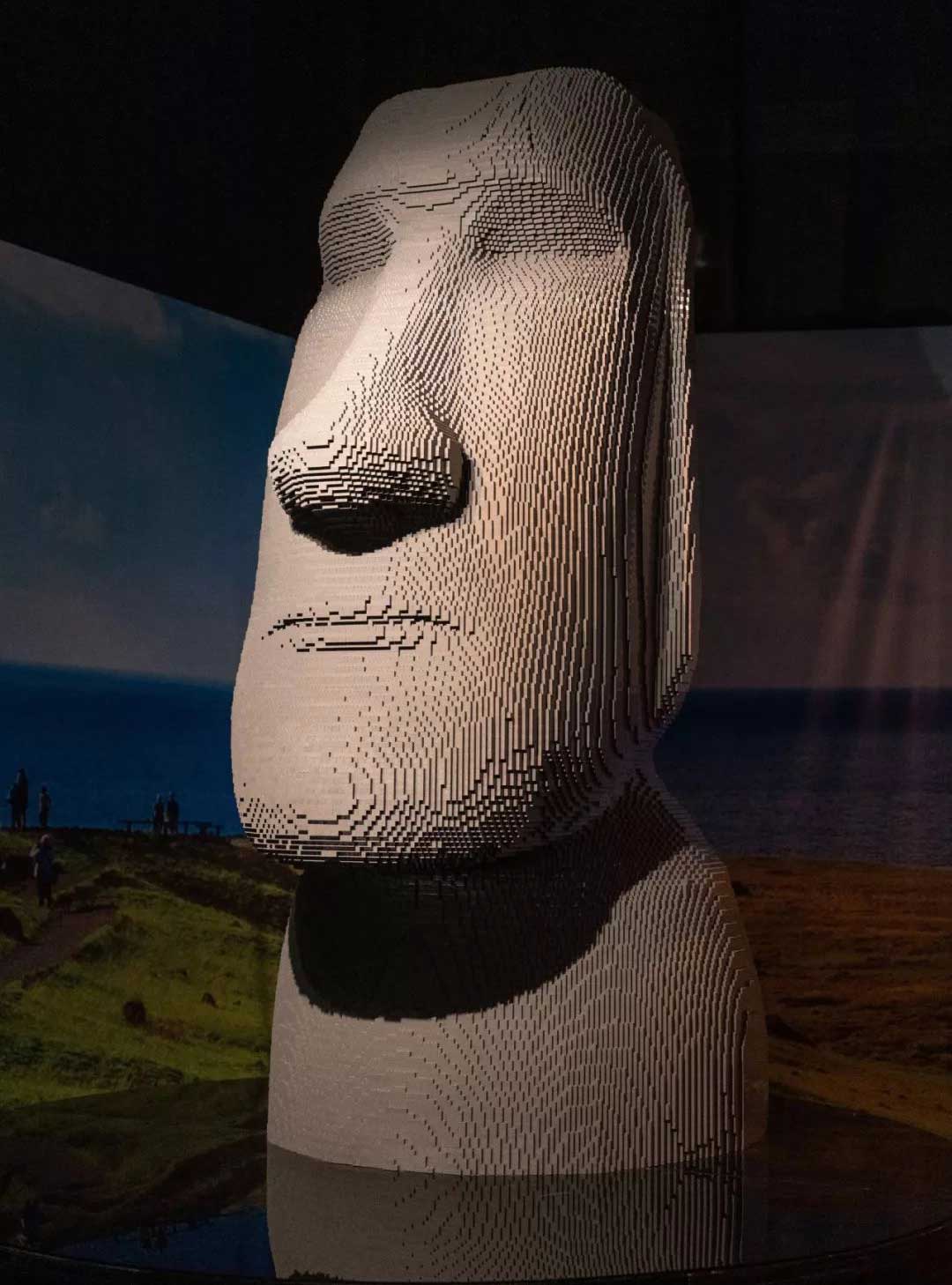 这座1:1复制的乐高巨型石像近3米高,堪称绝佳打卡点,往前一站不用凸造型都能出大片。