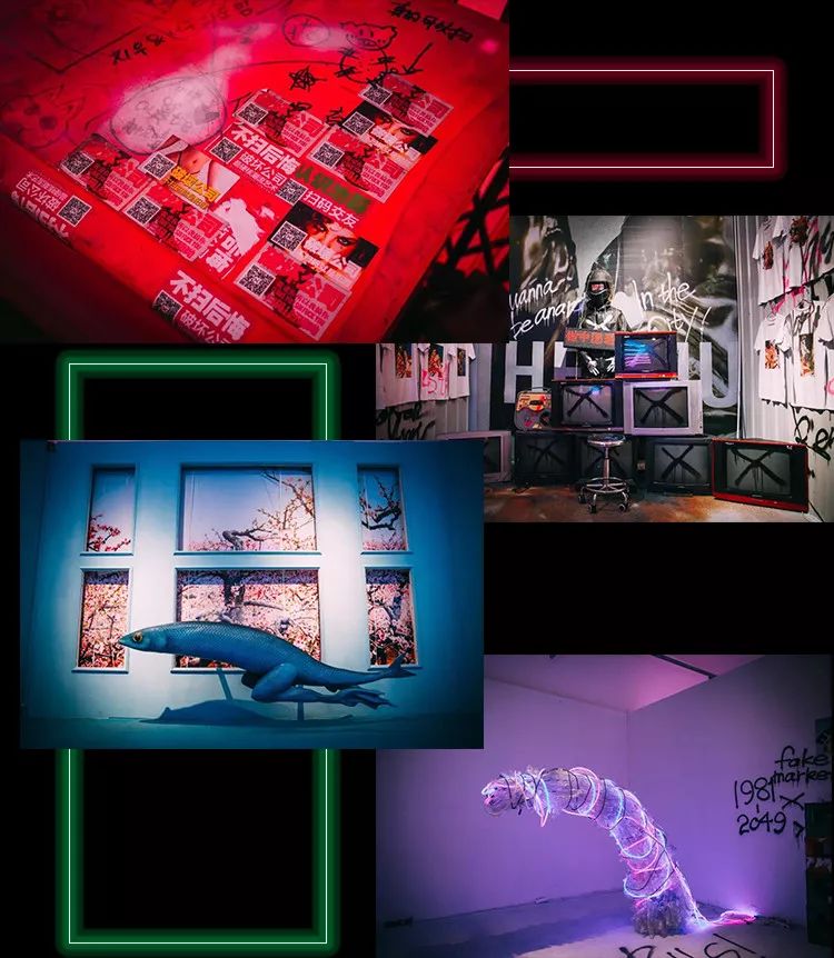 在一个连感冒灵药厂都开始卖秋裤的当下,为了别扭的生活你得向现实下跪叫爸爸,虽然你也分不清这现实是真还是假。只有那些从你脑细胞繁衍出的杂耍商贩们,依然谄媚的像你兜售着关于未来的春梦。冒牌市场,让这个夏天燥起来。1981到2049,骑上这台花里胡哨的三蹦子,奔向赛博朋克的超未来时空。准备好了吗?这里的展览有点辣,池磊的风格有点炸!