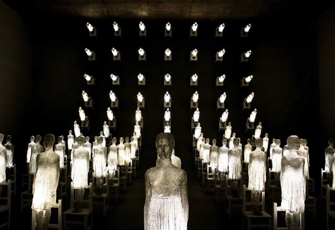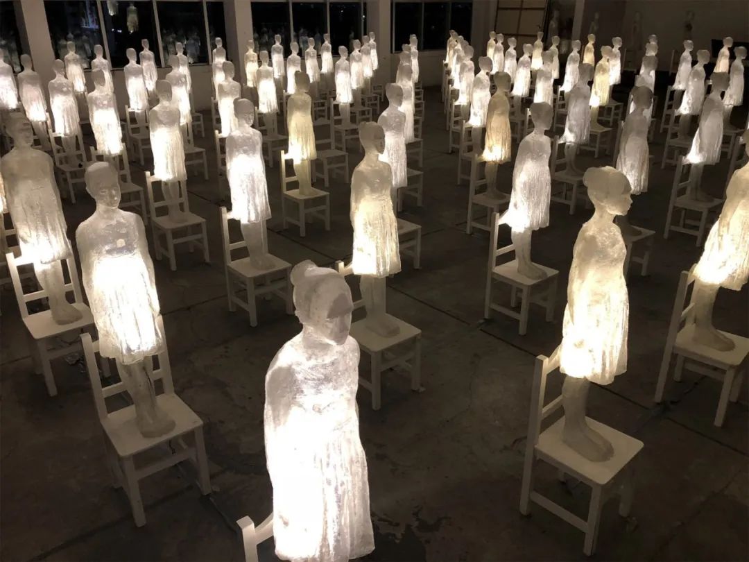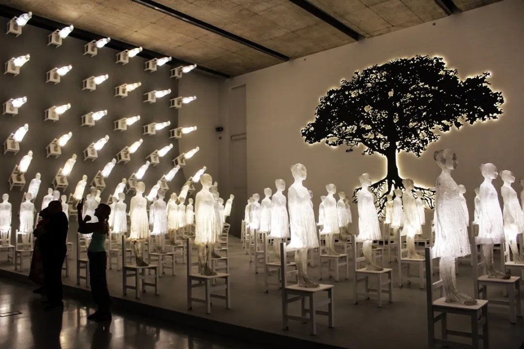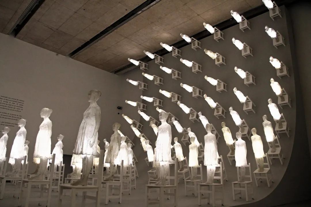 150个玻璃纤维人偶排列在白色椅子上,从地板一直延伸到10米高的天花板。在一个名为“Ataraxia”的展览中,led照明装置激发了这个希腊词背后的灵感,这个词大致可以翻译为沉着、平静和宁静。这个由阿根廷艺术家Eugenio Cuttica设计的发光项目于2018年在布宜诺斯艾利斯的MAR博物馆展出,探索了主题通过摆脱欲望获得平衡和幸福的方式。