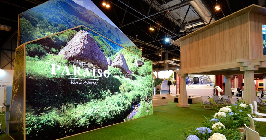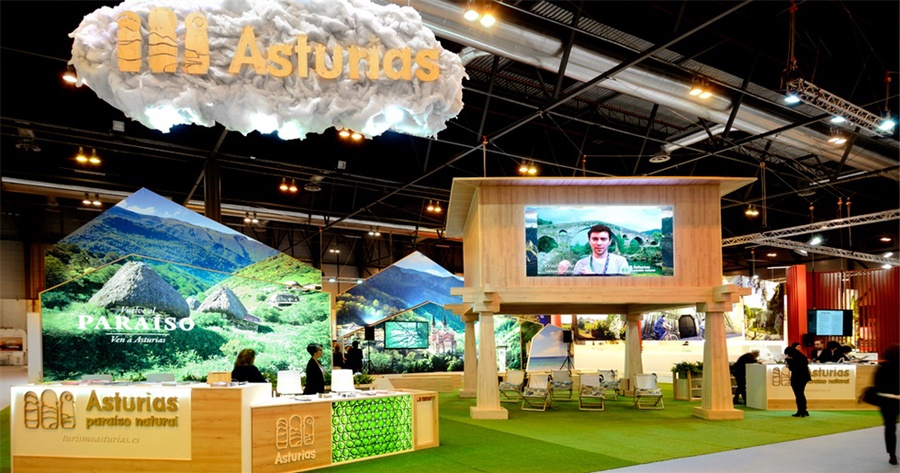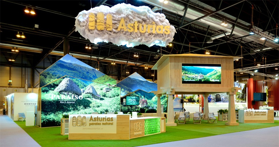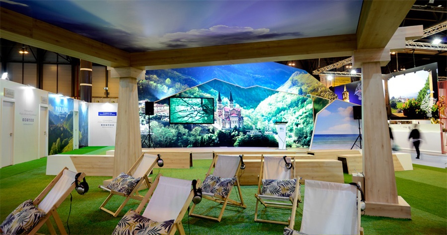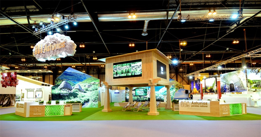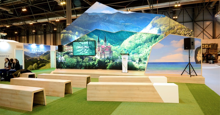 活动空间的主要元素是什么? 真正的草地上的谷仓和几百朵从阿斯图里亚斯带来的绣球花,令所有参观者感到高兴的是,他们不仅看到了一个典型的阿斯图里亚斯景观,而且能够在现场亲身地感受到它: 来自阿斯图里亚斯的一位作曲家特别创作了一幅沉浸式的声音地图,用大自然的声音,动物和植物的声音,将现场的公众带到了阿斯图里亚斯自然的天堂,客人们在体验这些独特声音的同时还能闻到来自阿斯图里亚斯的苹果、青草和大海的芳香。现场阿斯图里亚斯山脉的巨大图形,当游客一进入活动现场仿佛就深深地包围着,这样的设计让现场的沉浸感更加强烈。阿斯图里亚斯地区所有的财富——文化、美食——都在活动现场的专门区域被展示和体验,同时活动中结合了社交媒体参与和互动以保证日益苛刻的社会公众在现场的体验是难忘的。