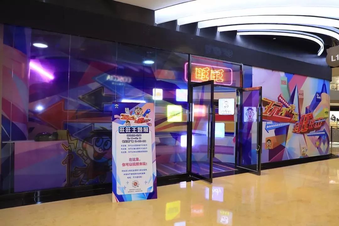旺旺主题展览绚丽而具未来感的展厅外观,让人充满期待,8大子品牌Logo,旺仔、浪味仙、邦德先生、Fix Body、贝比玛玛、辣人、哎哟、QueenAlice争先出击,洞见旺旺品牌的多元化发展。