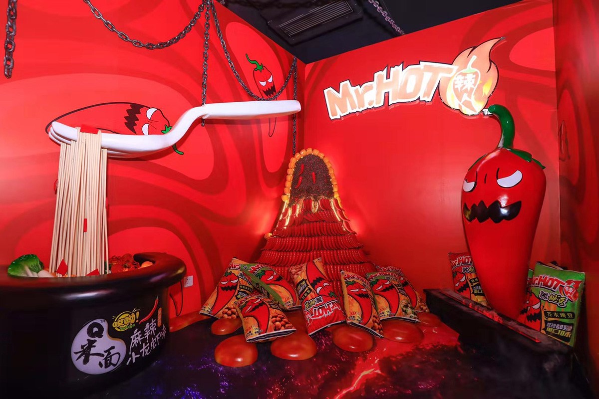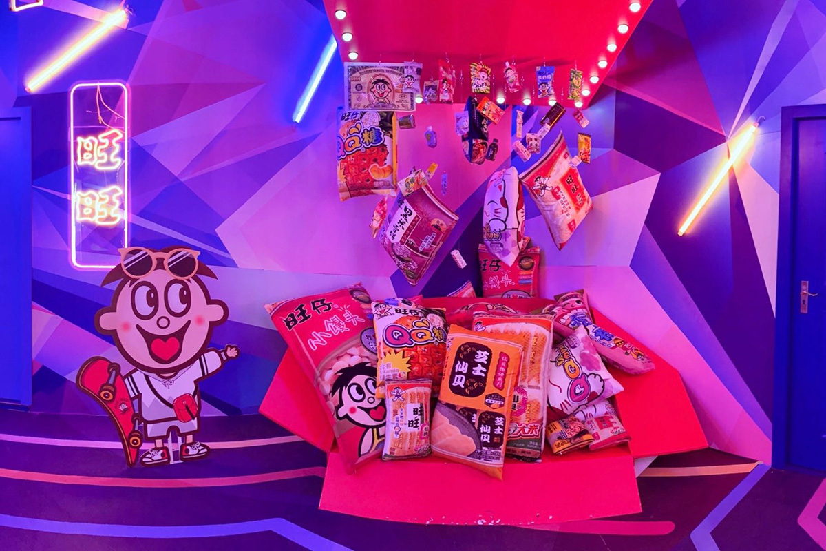 领票入场,迎面而来的是时空传送通道——旺仔空间,充满童年记忆的零食从礼盒中喷涌而出,三道通往不同空间的任意门,让整个展览更具神秘色彩。在这里,你可以穿过梦境重返童年,感受“贝比玛玛”大小屋的奇妙;触摸未来,想吃就“Fix Body”,告别非胖即瘦的馋嘴选择;踏过翻涌的岩浆,在炙热的“辣人”空间体验炸裂的味蕾刺激。还有快乐似神仙的浪味仙、举世皆困我独醒的邦德、女王范十足的迷幻仙境QueenAlice,更多精彩等你挖掘。