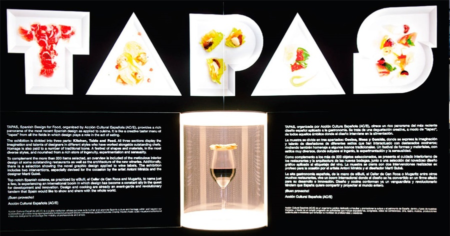 “西班牙餐前小吃,西班牙食品设计”是由西班牙文化行动组织和设计的一次展览,旨在超越烹饪创意的极限,并参加了日本的东京设计周。建筑师兼设计师胡利·嘉佩乐策划和设计了200多件来自西班牙的厨房、餐桌、食品和葡萄酒的设计作品,这将为美国(迈阿密和华盛顿)以及亚洲(东京和首尔)的食品行业带来创新。