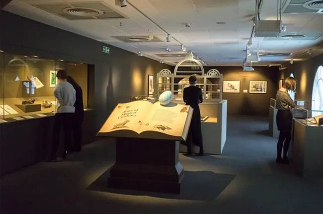 为了哈利波特魔法史Harry Potter: A History of Magic特展,大英图书馆在展场布置上下了很大的功夫;不仅是准备了许多于魔法相关历史文物外,还特别将大英图书馆布置成魔法世界,一进入展览区,就似乎身临其境自己置身于古老魔法世界图书馆和霍格华兹休息室里。