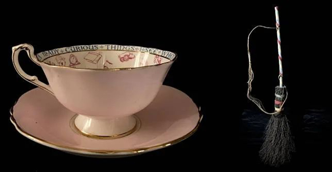 来自英国康沃尔的「巫术与魔法博物馆(the Museum of Witchcraft andMagic)」也参与其中,这家博物馆为参观者呈现的是展品和静态场景展的一种奇特组合,来自西方国家的罕见珍品穿杂其中。其中大量的魔法物品,包括20世纪炸裂的坩埚、蛇形魔杖、算命茶杯(左图)、飞天扫帚(右图)、用来练习占卜的魔法镜以及黑月亮水晶球⋯⋯等,围绕着类似这样的物品,让观者沈浸在虚实相错的叙事性展览。