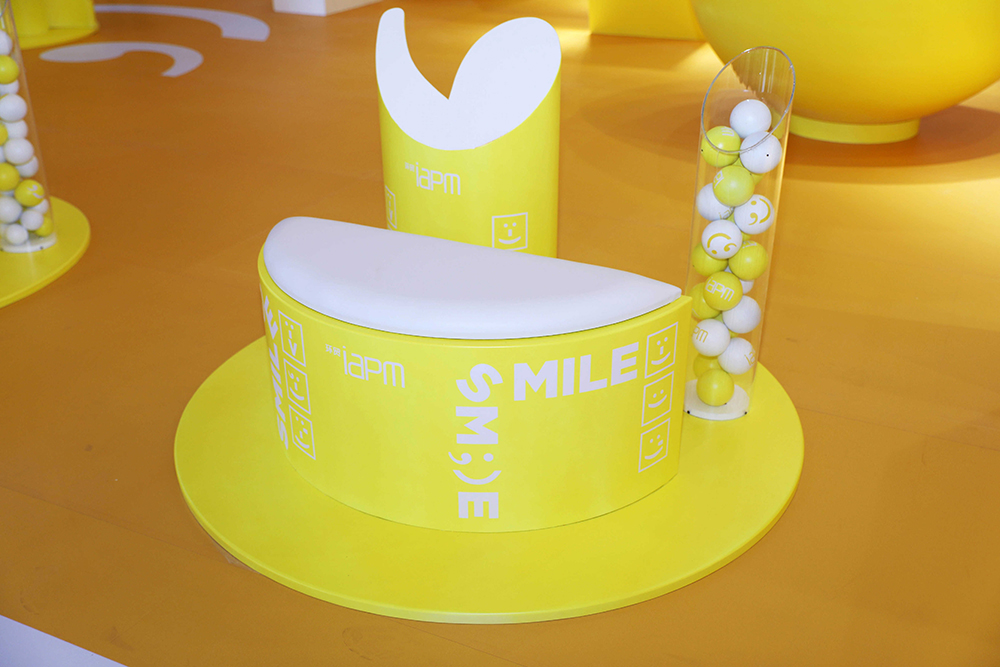 iapm商场L1中庭暖心呈现「LOVE & HOPE」双面艺术装置,以充满活力的明媚黄为主色调,打破空间界限,以不同视角巧妙呈现 “LOVE”和“HOPE”两个英文单词,意寓「爱寄希望」展览主题。装置融合潮流玩味的创意表情符号,标点符号构建出各式笑脸表情,更加入充满正能量的祝福词汇,用无限创意间呈现无穷能量。