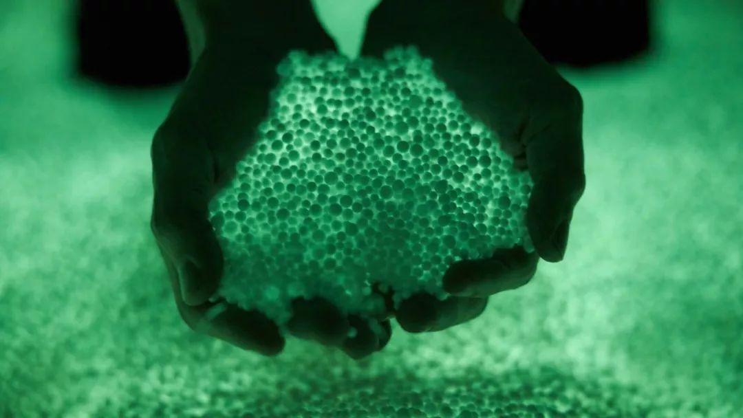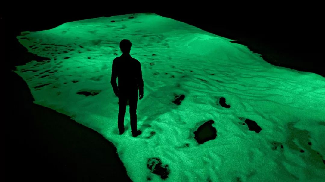 其中一个是一个黑暗的房间,里面充满了数百万个小球,就像组成沙丘的沙粒,或者,用在场的联合策展人Sue-an van der Zijpp的话来说,“一种由发光的星尘组成的宇宙”。“这就像在星空中漫步,”罗斯格德在一个展览视频中说。“它很像童话,但也很真实。”