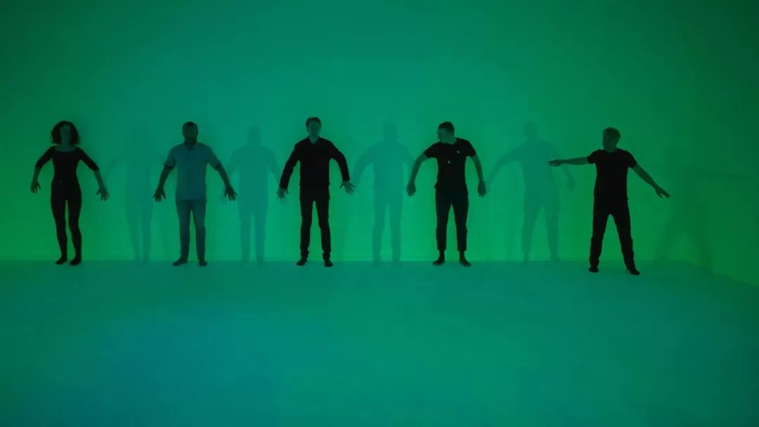 这个空荡的房间沐浴在交替的蓝绿色和红橙色的磷光中,“拍摄”了居住者的色彩过渡。