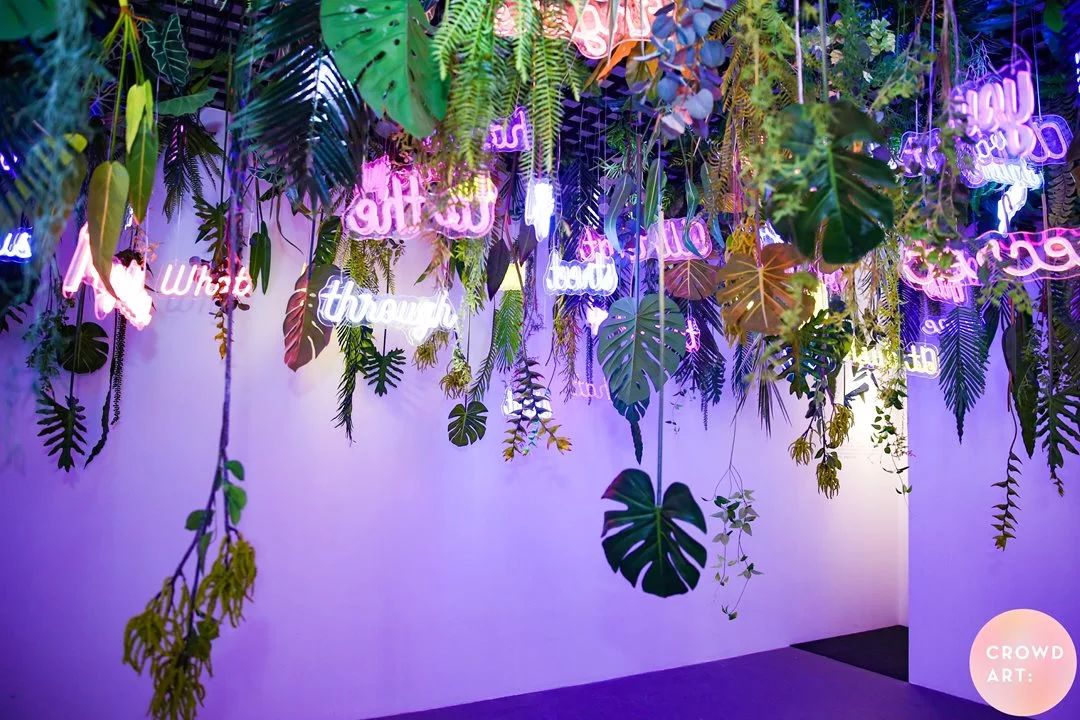 从粉色电话亭到巨型棒棒糖,从全屋没有一个棱角的纯白空间到充满热带雨林味道的霓虹花园,从运用人影跟踪技术打造的萌软“小毛人”,到沉浸式动力交互装置“色彩流体”,CrowdArt把最先进的黑科技和最用心的光影置景相融合,让你进入前所未有的白日梦境。