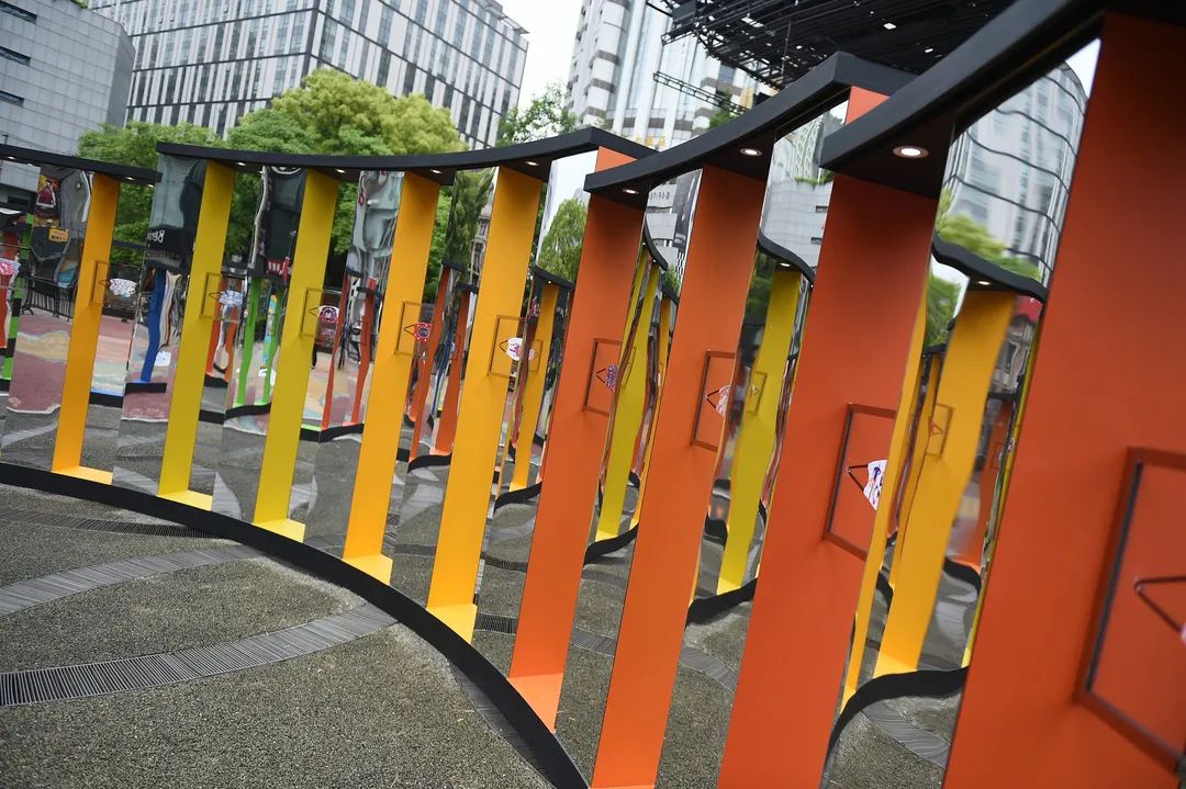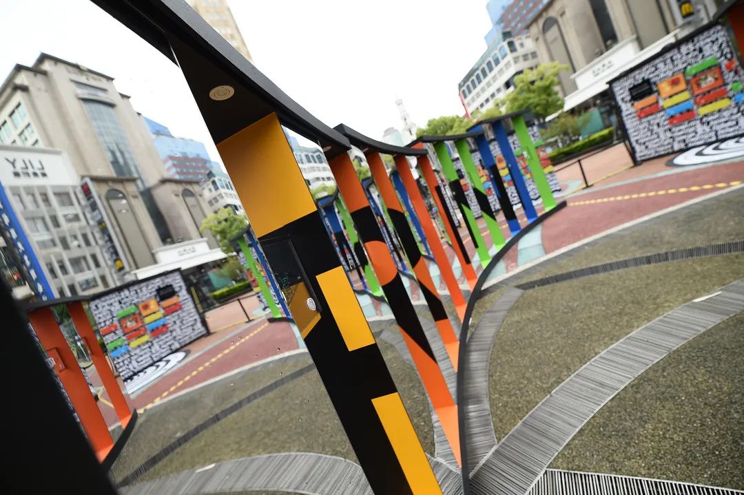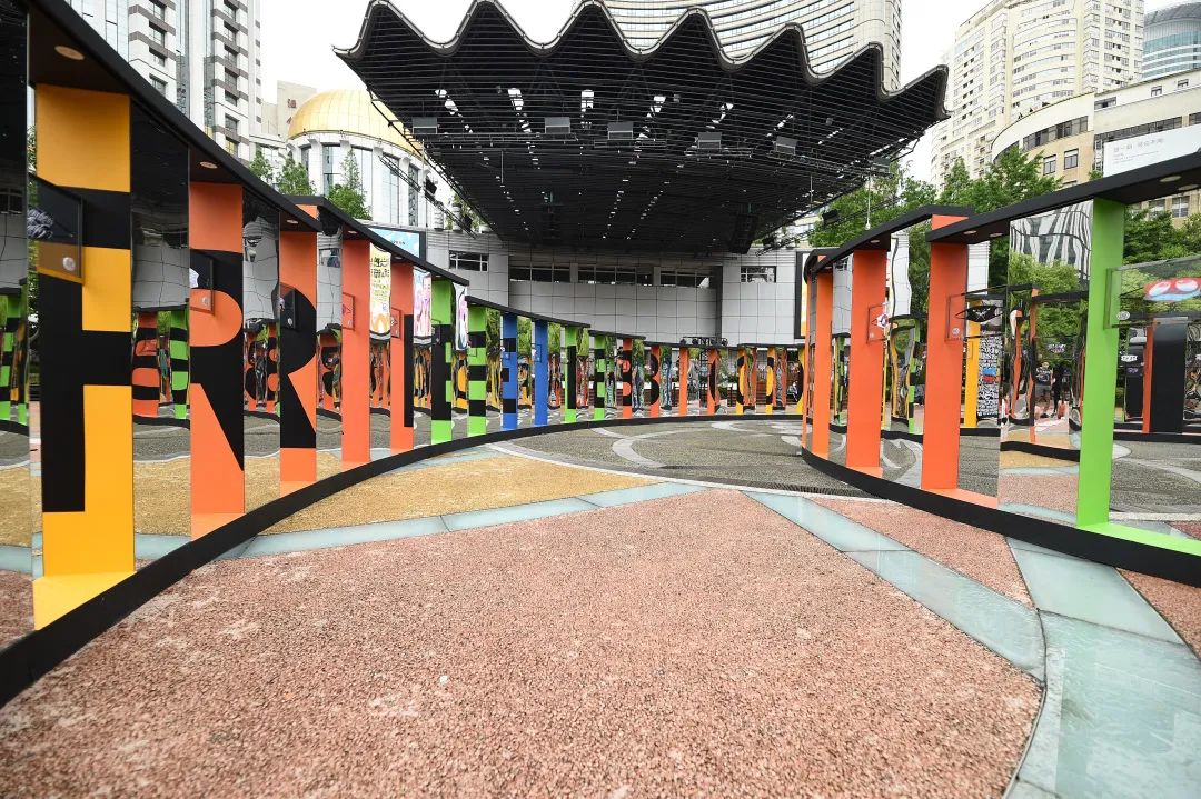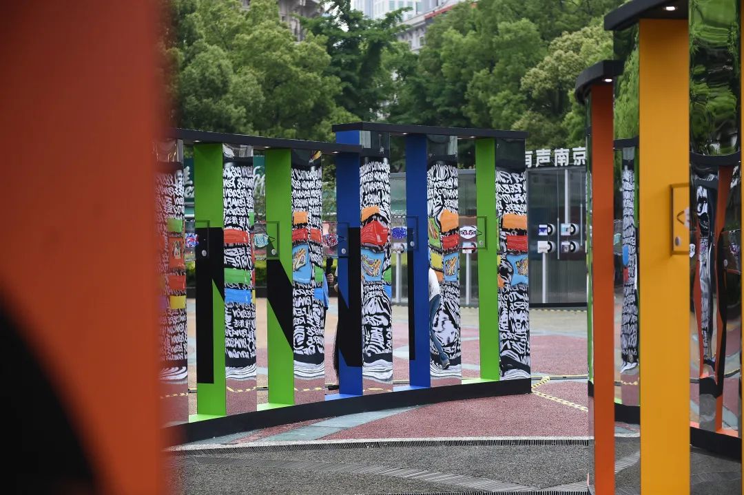 虽然2020年伊始,被新冠疫情的阴影给笼罩,不过我们仍在期待这场疫情彻底结束的时刻,期待打破心灵的灰色,期待一次精神的新生!上海南京路步行街运用艺术和设计创意的方式,在这样一个特殊的时期,发起、扩散、传递“爱”、“新生”以及正面积极的力量!趁着五一小长假,一起来打个卡!整个活动现场的造型,犹如一滴艺术的水滴降落在南京东路上,泛起层层涟漪,表达了“新生”精神就此联动和漾开。绚丽多彩的配色,就像一道彩虹,绽放希望。盈彩矩阵装置的内侧面以象征希望的彩虹色进行装点,艺术家们的作品安置其中,人们穿梭于色彩之间享受艺术创作的趣味和色彩的变幻。