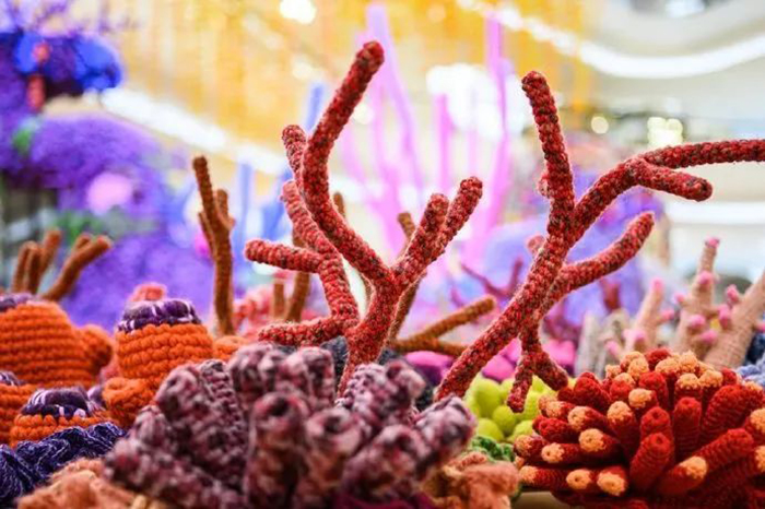 另一个装置是由废弃的棉花和鲸鱼骨架装置制成的四条大型鲸鱼,分别高2米和1.5米。鲸鱼是地球上最大的哺乳动物,1800年之前,因为鲸鱼油的庞大需求,鲸鱼被大肆捕杀,现在濒临灭绝的威胁。他还带来了以前在印度尼西亚展示的杰作,此作品首次在泰国亮相,其中包括5,000条各种鱼类、珊瑚礁和海洋动物,所有这些栩栩如生的作品都是由工厂遗留或废弃的织物和纱线制成。