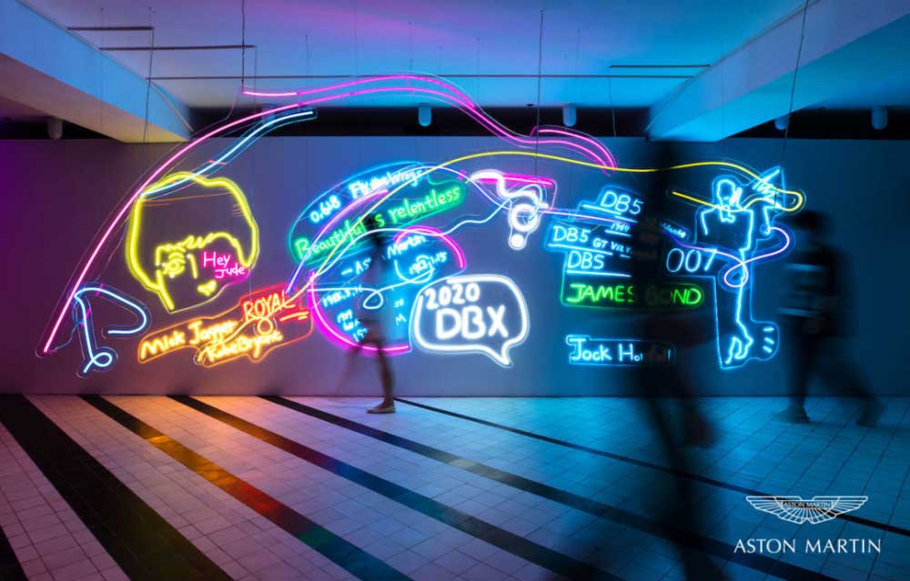 展厅内,除了最吸睛的DBX外,你还可以通过艺术家独特的创作语言,感受艺术与工业、创新与经典相互碰撞、结合后所迸发的火花。这些绘画、装置和影像,是强烈的信念和自我的坚守。本次展览上,有两组作品来自艺术家倪志琪与阿斯顿·马丁的特别合作,结合了其常用的创作元素以及马丁的经典文化图像。