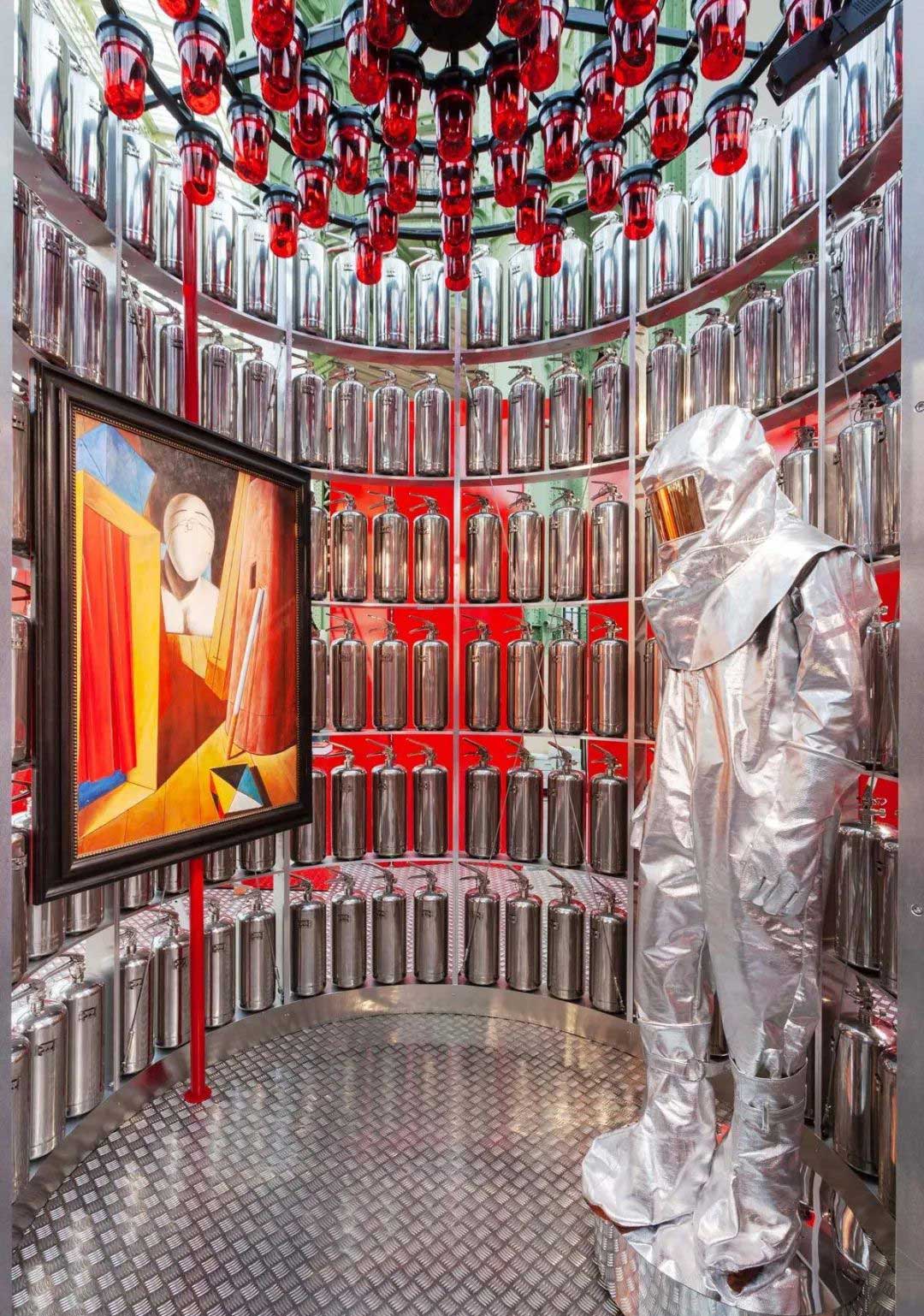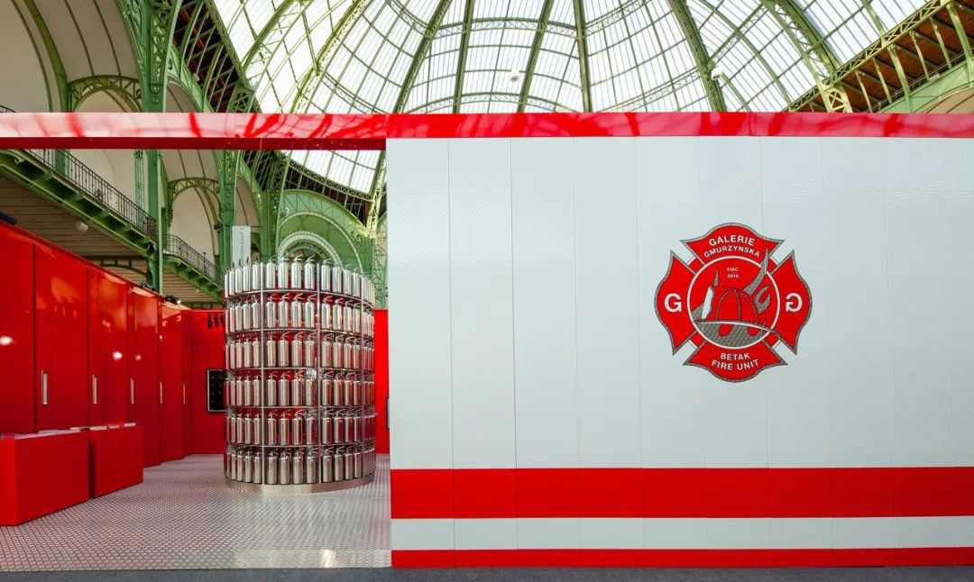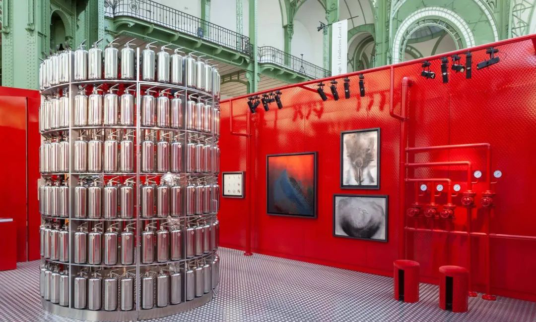 在法国艺术博览会上,国际画廊GALERIE GMURZYNSKA打造的名为《着火》的主题展览火了。这次《着火》主题展览展出了整个20世界使用或描绘各种形式以“火“为题材的艺术作品,为现场的观众们带来全新视觉体验,满满圆弧形的灭火器装置更是此次主题展览的形象代言人,火焰红色调的装饰也清晰明了地阐明了展览的主题。