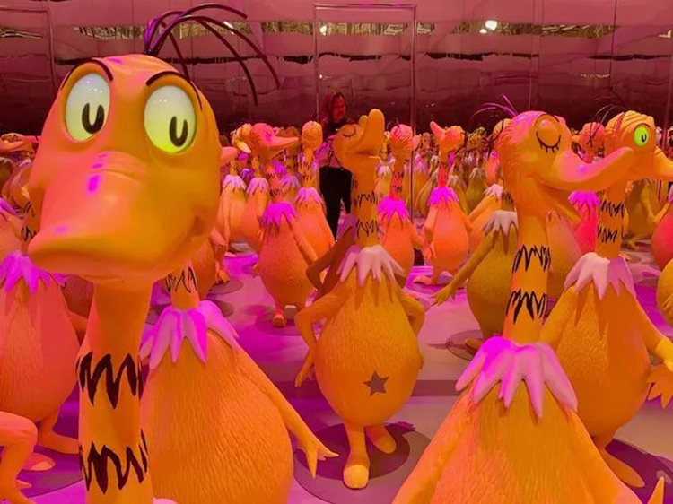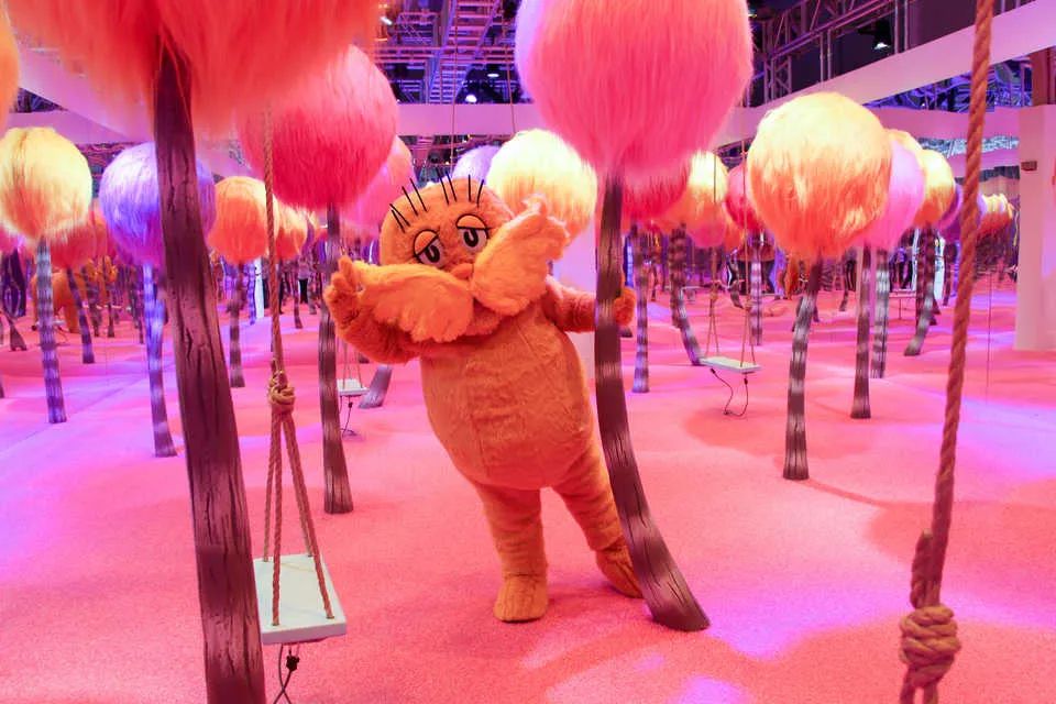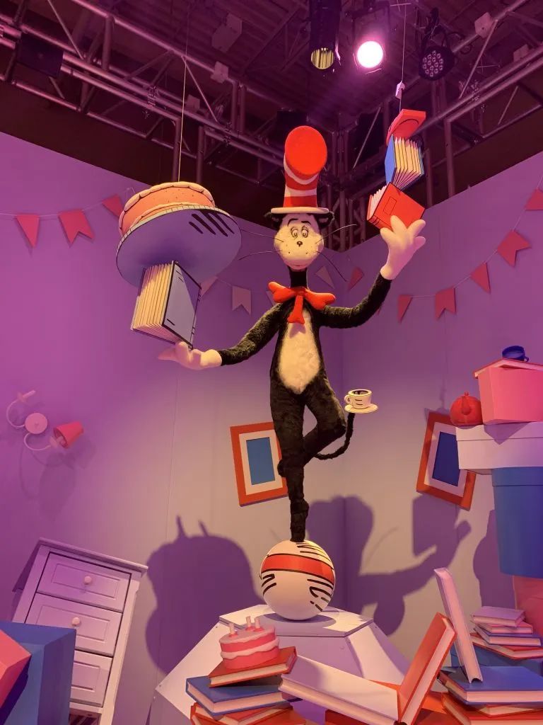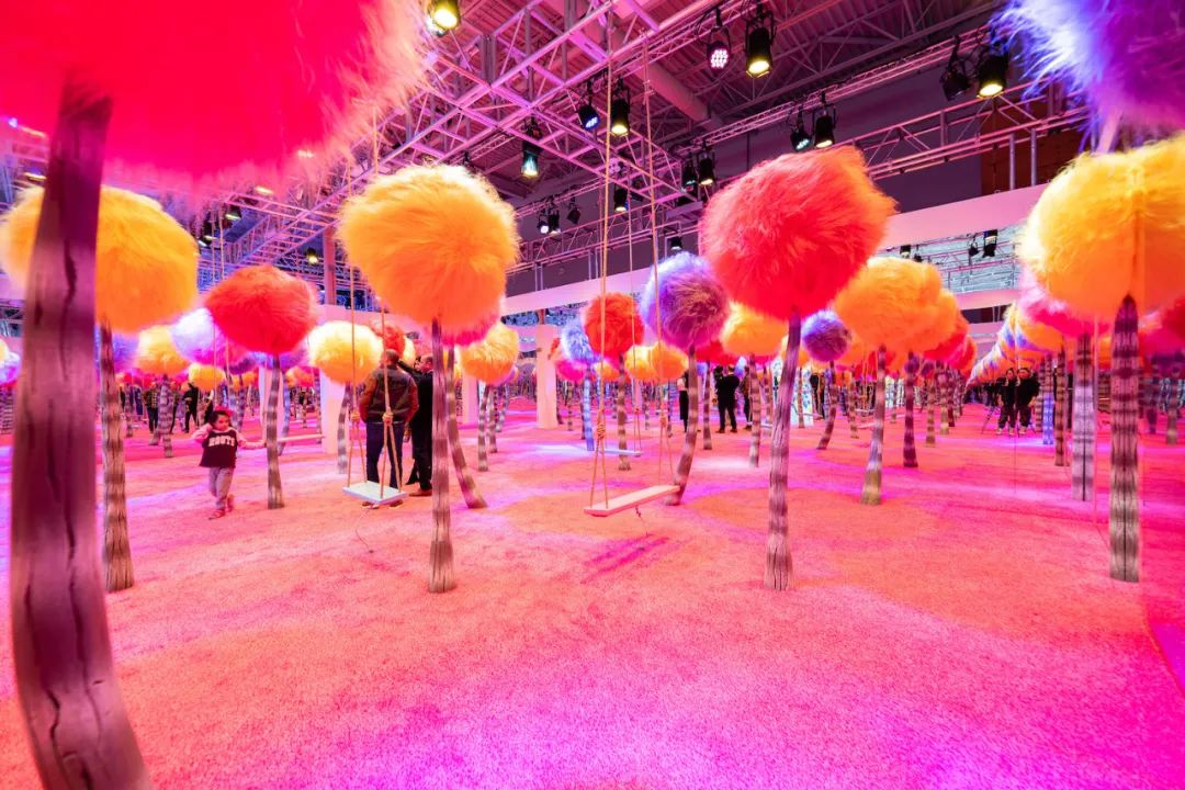 Dr. Seuss网红巡展在多伦多密市Sqaure One购物商场展出,快闪展面积有15,000平方英尺,Square One将15,000尺的地方变成童真故事书的世界。《The Dr. SeussExperience》的艺术展览与《无限之镜》,设有多个精心设计了沉浸式场景。走进居室内,与绘炙人口的故事书人物故事情节共处一室,立体化体验苏斯博士的精心绘画的插画和场景,再投入小时候看过的故事,充满童趣和艺术感。