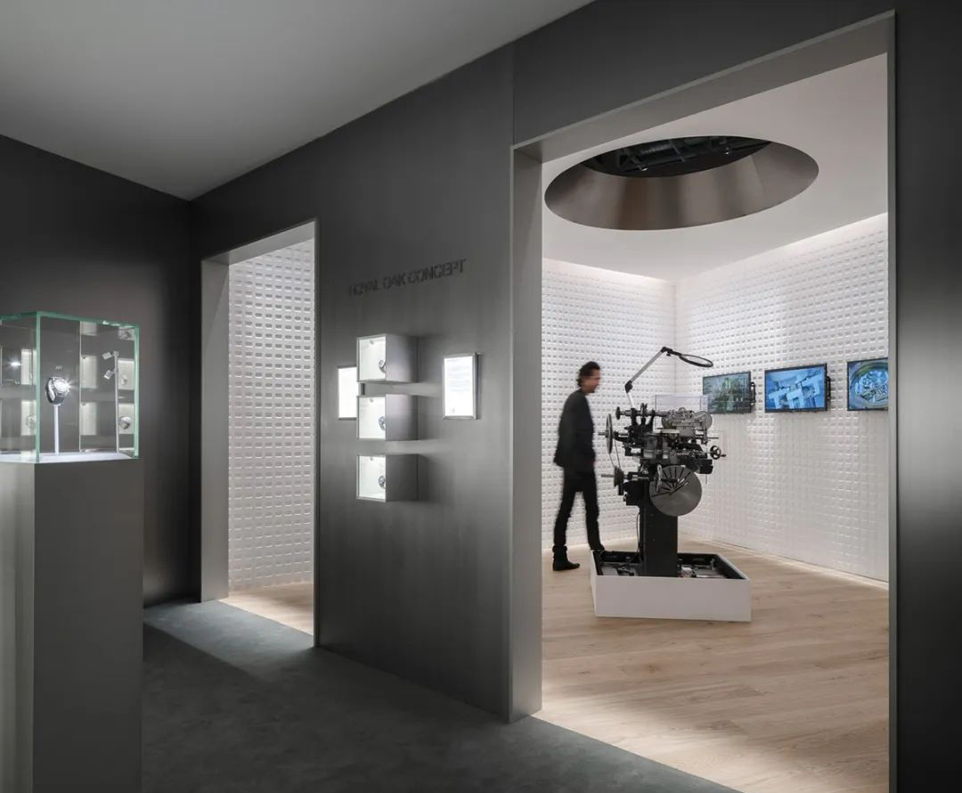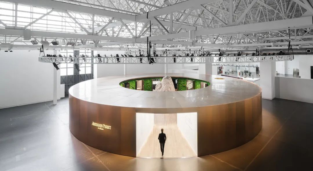 瑞士高级制表品牌爱彼(Audemars Piguet)“驭时·先锋——爱彼当代艺术及高级制表展”由法国著名设计师马修·雷汉尼尔(Mathieu Lehanneur)操刀设计,展厅造型为一个以铜材质打造的巨型圆环,如同一枚时计的表盘,令人叹为观止,参观者犹如时计的指针。12间展厅展示爱彼的传奇之路和非凡成就,12扇“时间之门”展现12个不同主题,包括起源、创始家族、经典时计杰作、与当代艺术家的合作等。通过主题各异的展厅,观者将深入了解爱彼长达141年的传奇历程,开启从布拉苏丝到上海的独特旅程。 展览共展出200枚跨越不同时代的时计杰作,创下爱彼古董时计海外公开展出的数量之最,多枚爱彼创制的“史上第一”、限量杰作、稀世瑰宝借此次展览首次在中国亮相。