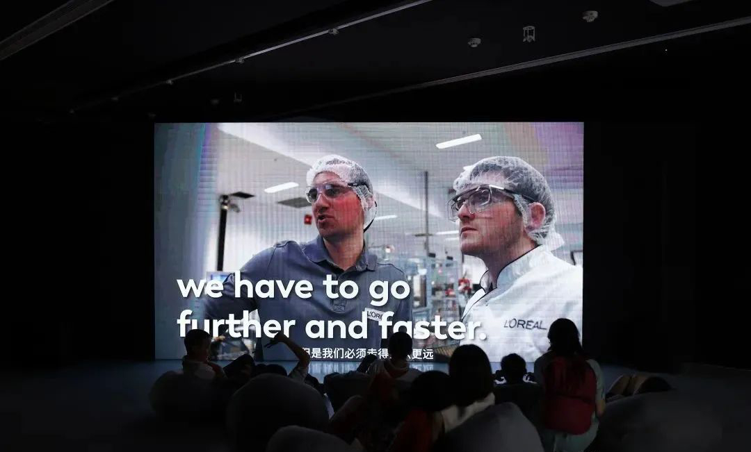 展厅之后,欧莱雅还布置了一个“美好”影厅供观展者休息,荧幕上循环播放着《阿玛尼全球清洁水计划“Acqua For Life”》《YSL美妆-奥立卡花园》等影片。这些影片用镜头记录了人与自然、人与社会、人与人之间的美好。在休息之余,也向观展者展示欧莱雅的品牌文化和理念。
