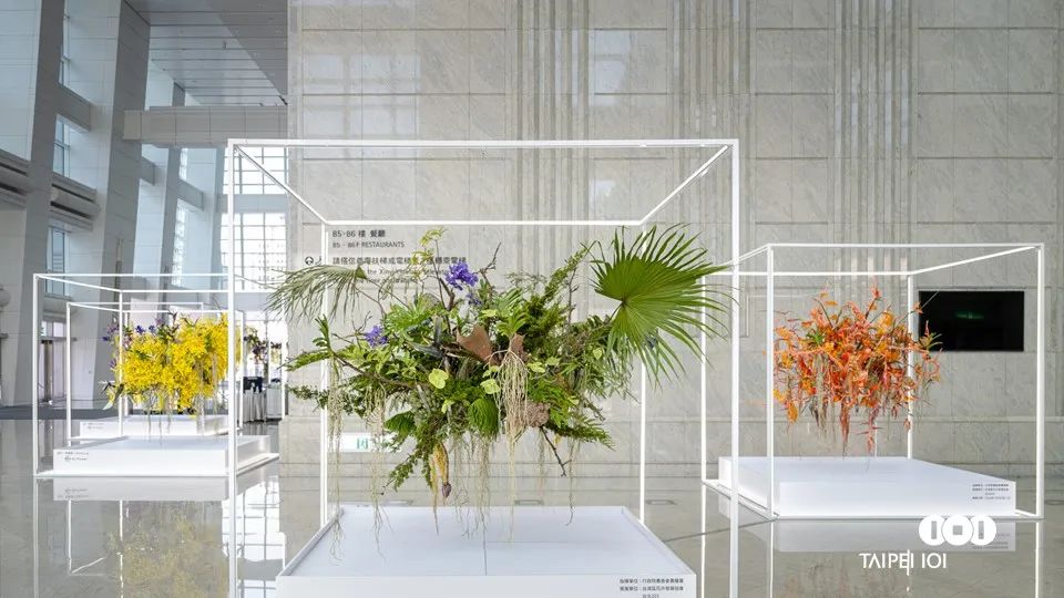台北101结合台湾花卉及艺术品,让迎宾大厅变身期间限定艺术展,以「岛屿花园」为主题呈现花卉创作艺术,透过艺术展演共同推广台湾花卉,降低花农们因疫情冲击所承受损失。