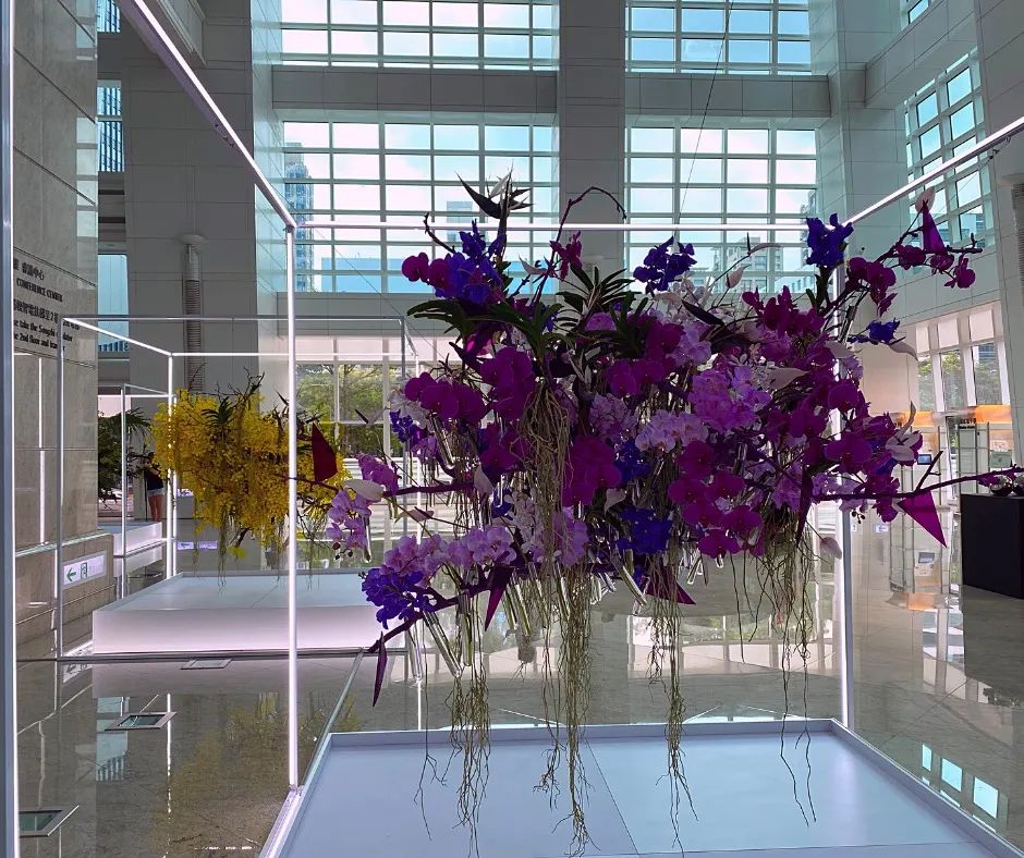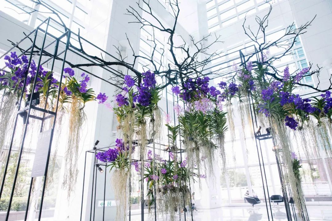 一走进台北101写字楼,映入眼中的「岛屿花园」是再次由CNFlower设计总监凌宗涌操刀,运用粉色与紫色的万代兰,让整个展场成了现代艺廊,那扑鼻的馨香,和着四周洒下的日光,万代兰正以从未见过的美丽姿态绽放着,更让人仿佛置身在自然花丛中。「岛屿花园」利用亚热带植物的色彩及叶形特性结合温带的花草花园,CNFlower设计总监凌宗涌表示,台北101是全台最高的绿建筑,他希望用真正的绿意、花草为写字楼打造生气。这座「岛屿花园」是结合各种创作媒材,让许多领域的艺术家创意同时碰撞,许多作品同时以「重生」概念呈现投射于未来的希望。包括康木祥的钢缆当代艺术,以及由行政院农委会农粮署、台湾区花卉发展协会,和CNFlower精心设计的花艺布置。