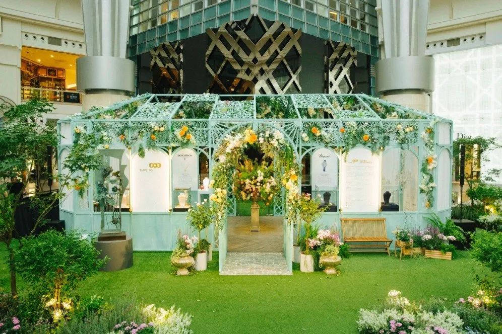 位于4楼都会广场的「莫内花园」,以手工仿旧的绿色花屋来呈现法国画家「莫内」笔下的花园,现场挑高设计,让满满光线直接洒落在典雅庭院中,整体看上去相当优雅、高贵。花园内部展示的是「世界珠宝珍稀作品」,与外部装潢互相呼应,让路过民众不禁停下脚步,享受市区一隅的法式时光,不能出国也能来101感受欧洲轻旅行!