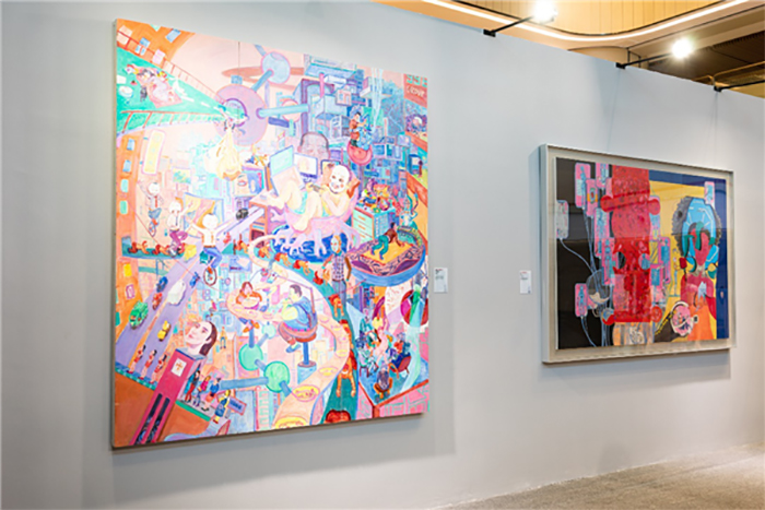 西单大悦城运用小区域装置艺术展与大区域分离式空间展相结合的方式,将购物中心的公共空间同写字楼、酒店进行联动,搭建一体式的艺术展览场景。从诸多作品中均可探寻当今青年艺术家对于当下社会面貌的反应和思考,例如来自中央美院毕业生刘艺超和董海洋分别带来了自己的油画作品《阳光草地》和《年轻的困局》,他们的作品反映了年轻一代的生活态度。